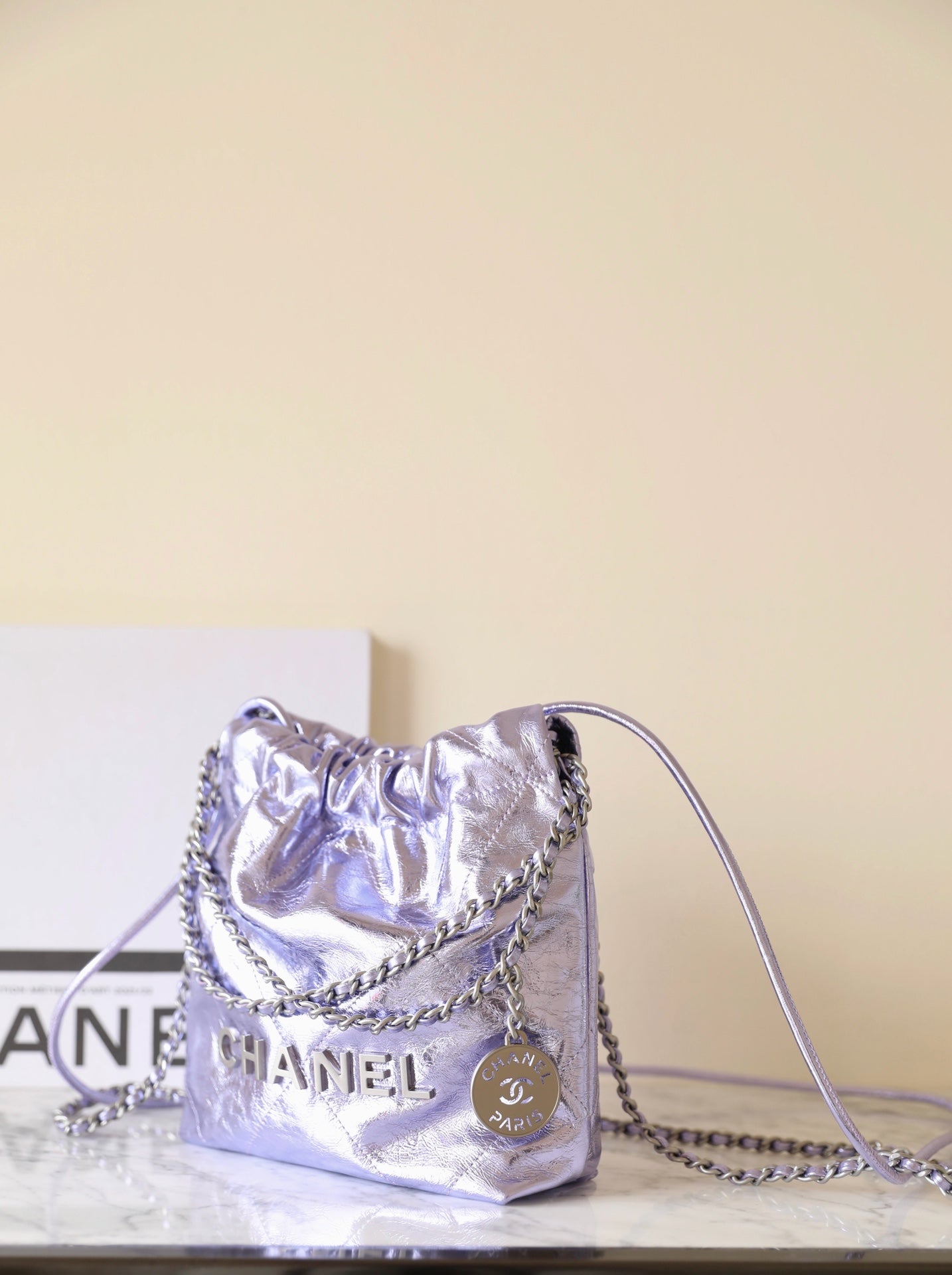 Bolso Hobo 22 25C 19cm Piel de cordero metalizada violeta