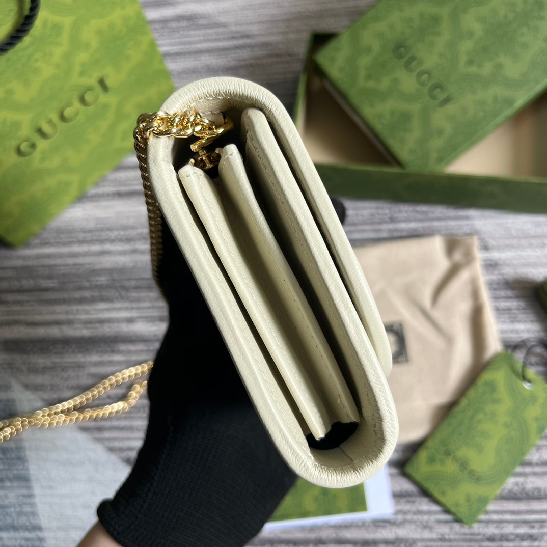 BOLSO DE HOMBRO MINI BLONDIE INTERLOCK DE 12" EN PIEL DE BECERRO BLANCA Y CADENA DORADA