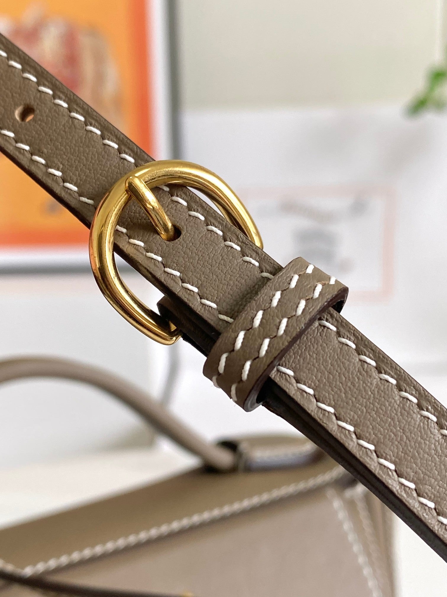 Bolso mini HM 24/24 de 21 cm, piel Etoupe Evercolor, herrajes dorados