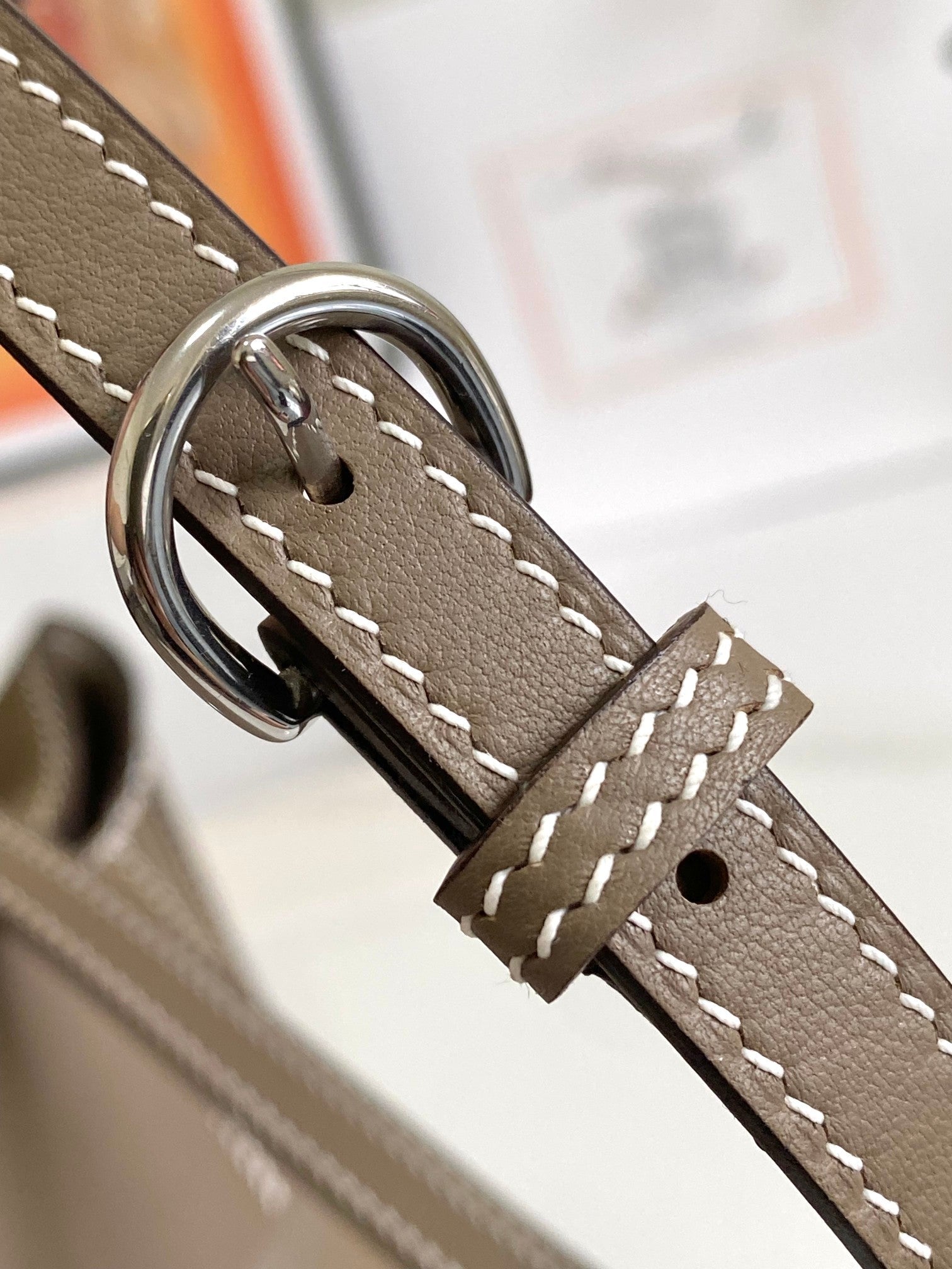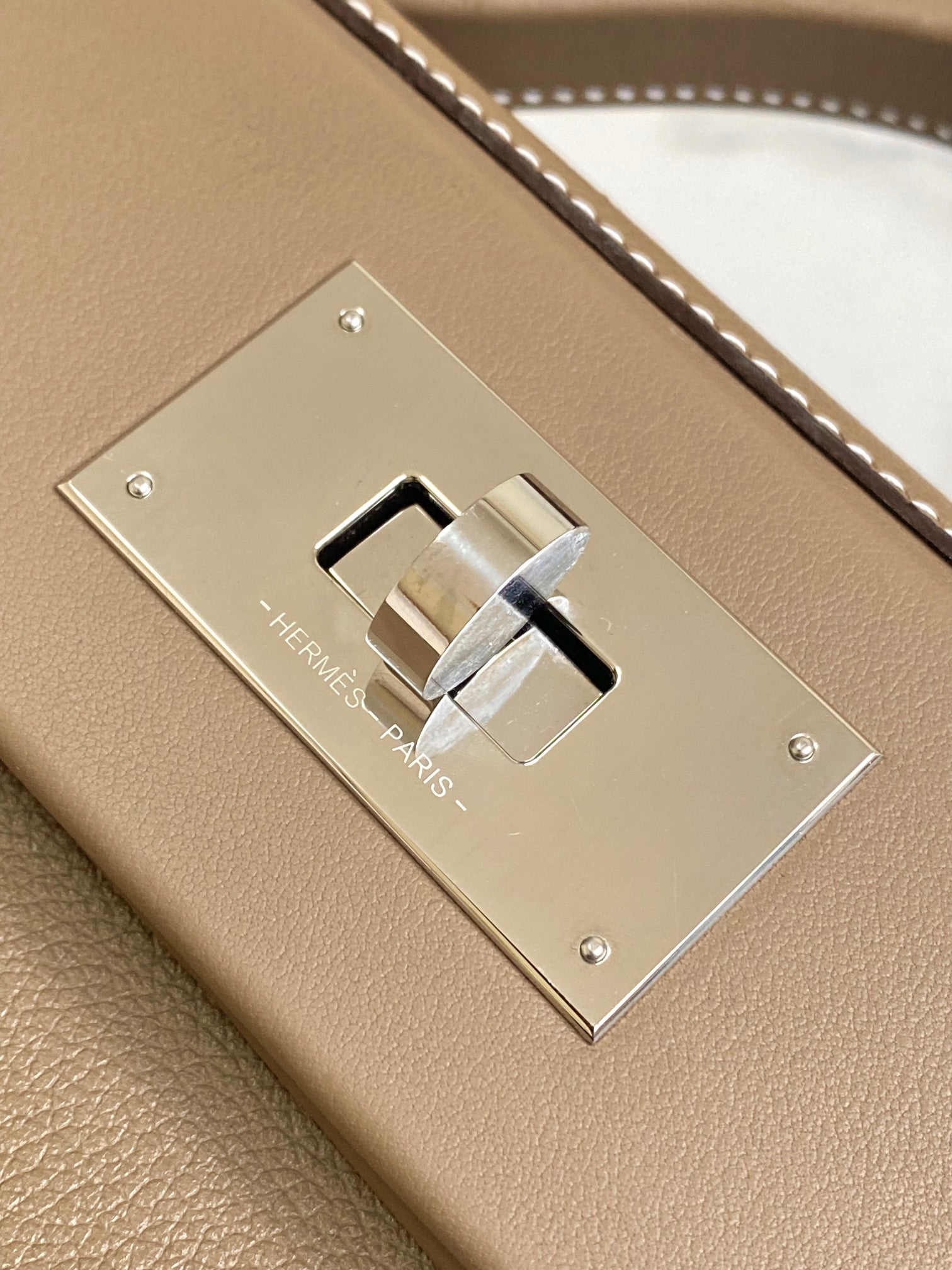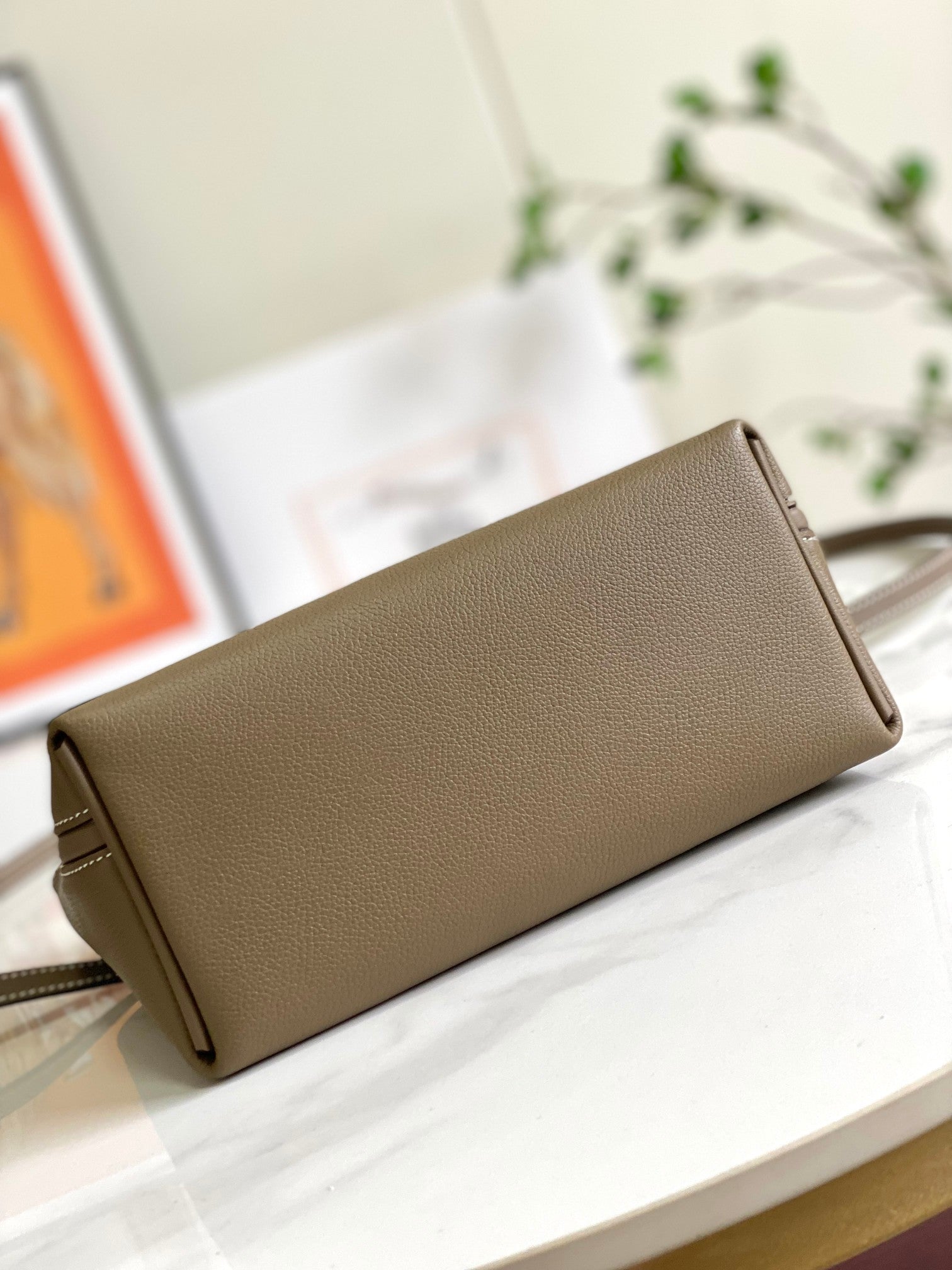 Bolso mini HM 24/24 de 21 cm, piel Etoupe Evercolor, herrajes plateados