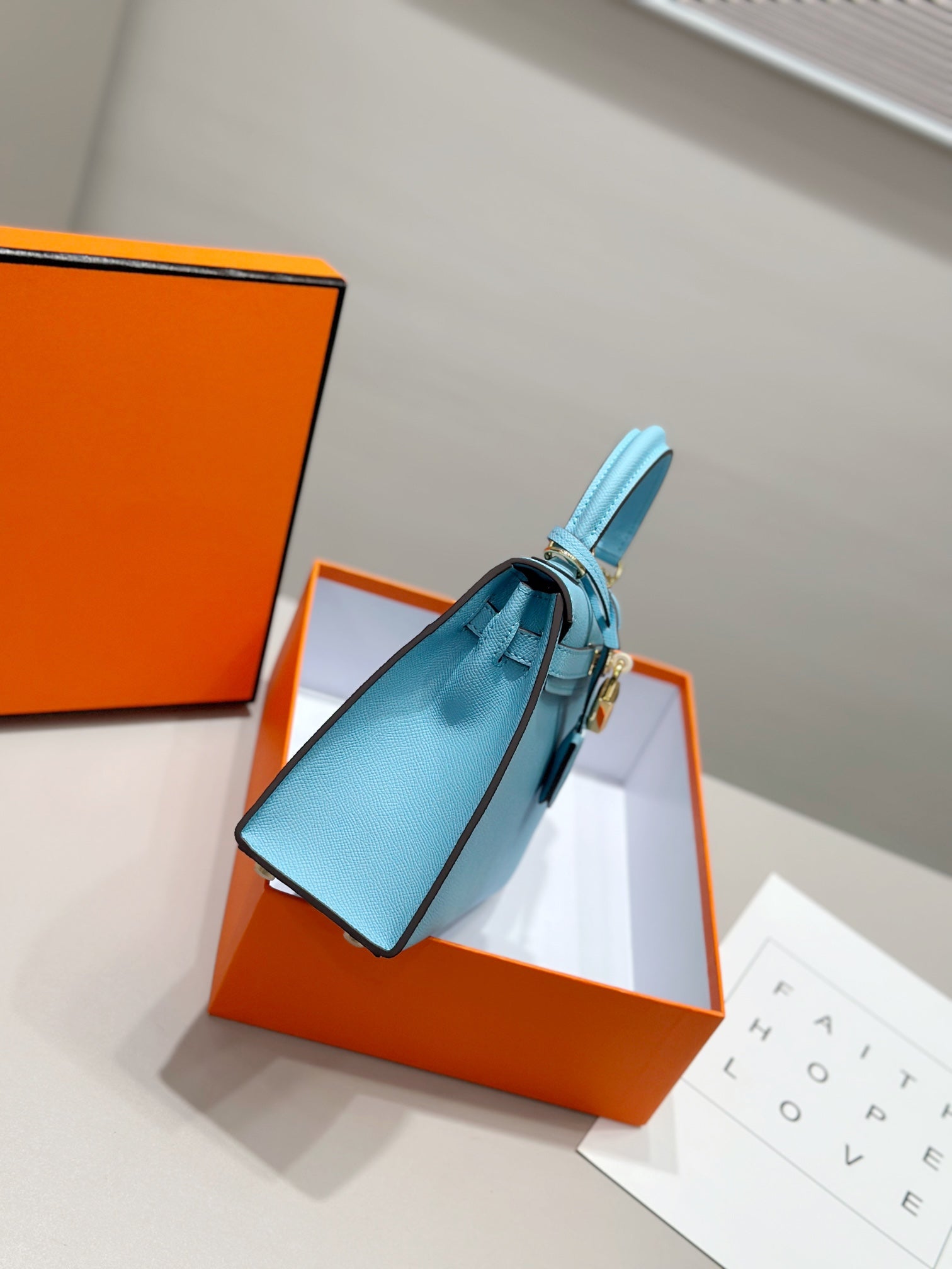HM Kelly 25 cm Tiffany Blue Epsom Cuero Herrajes Dorados