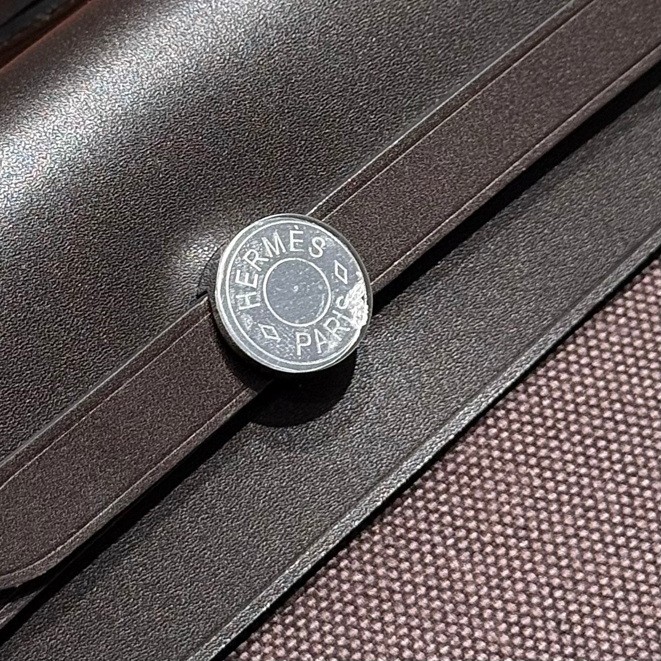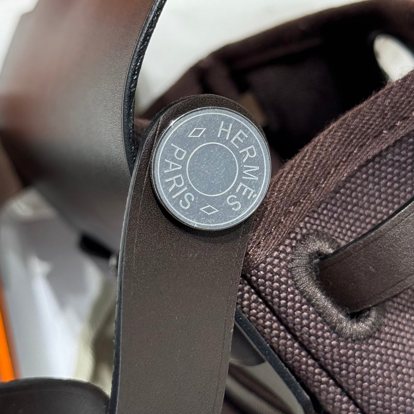 Bolso HM Mini Herbag con hebilla plateada de 20 cm, lona marrón oscuro y piel de vacuno Hunter 243305