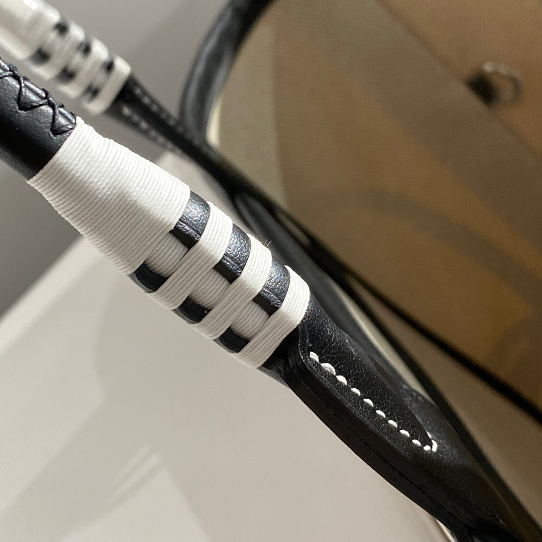 Bolso HM Steeple 28 de piel de becerro negra y lona azul y blanca