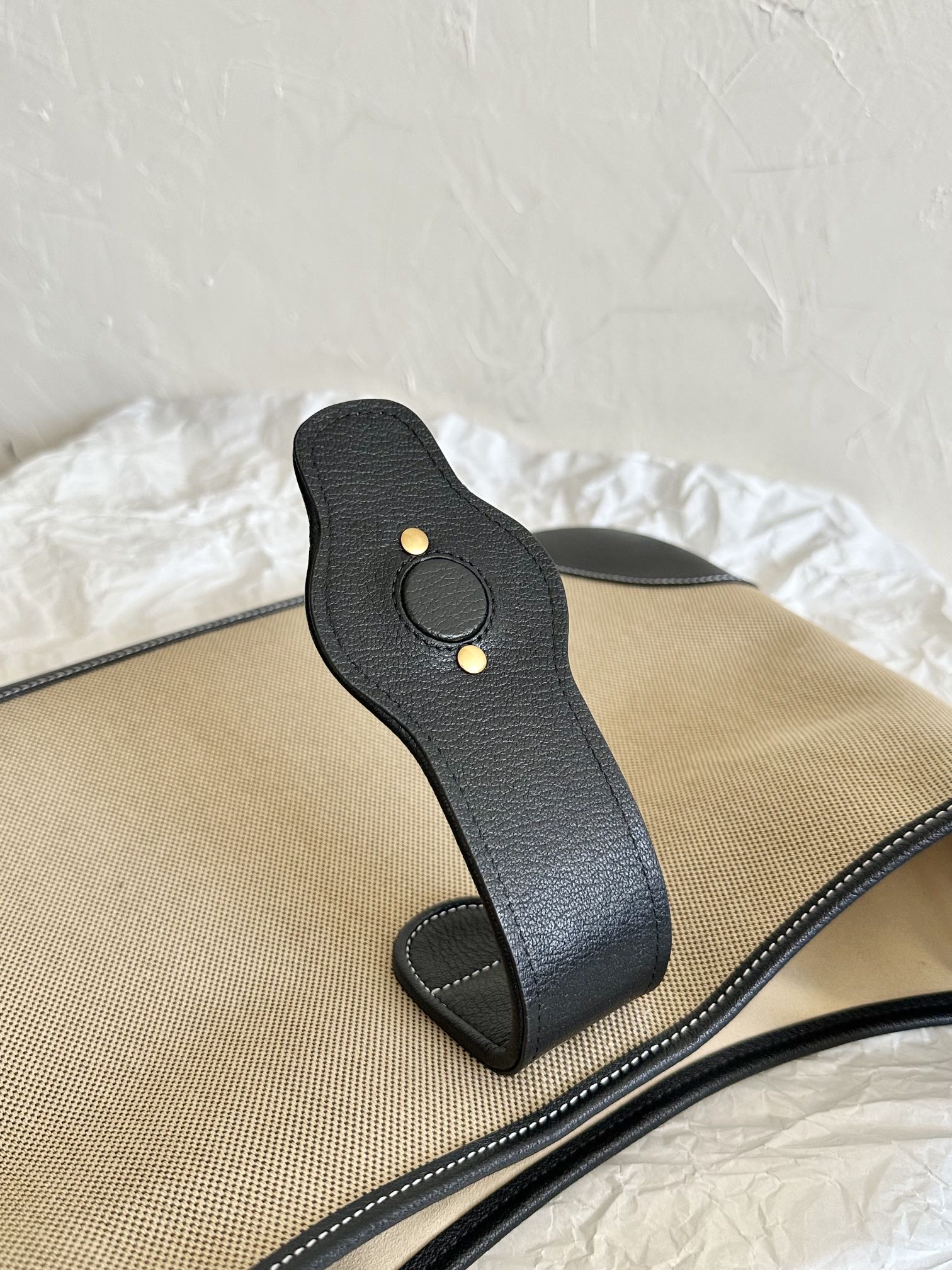 BOLSO GRANDE AFRODITA 47 DE LONA BEIGE Y PIEL DE BECERRO NEGRA