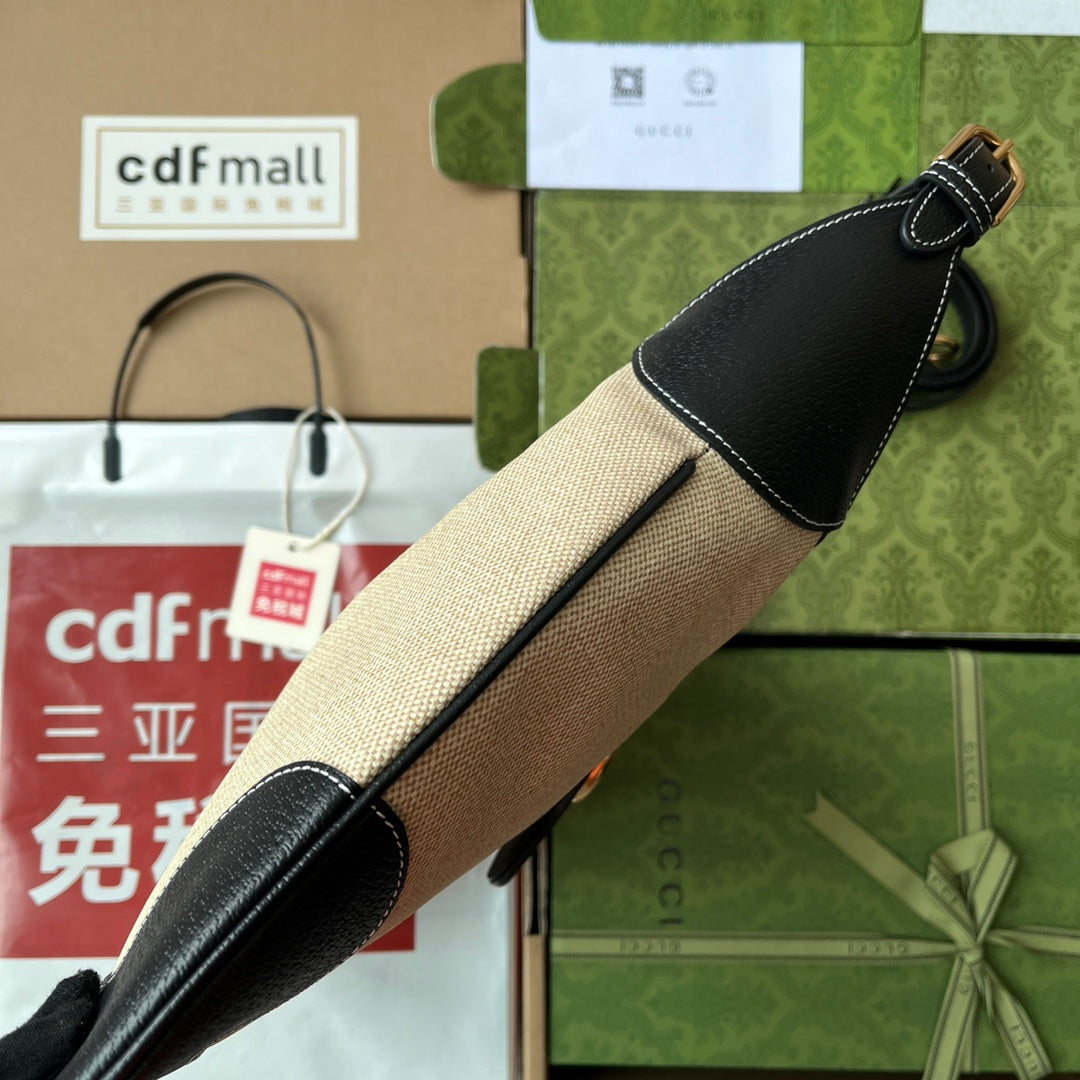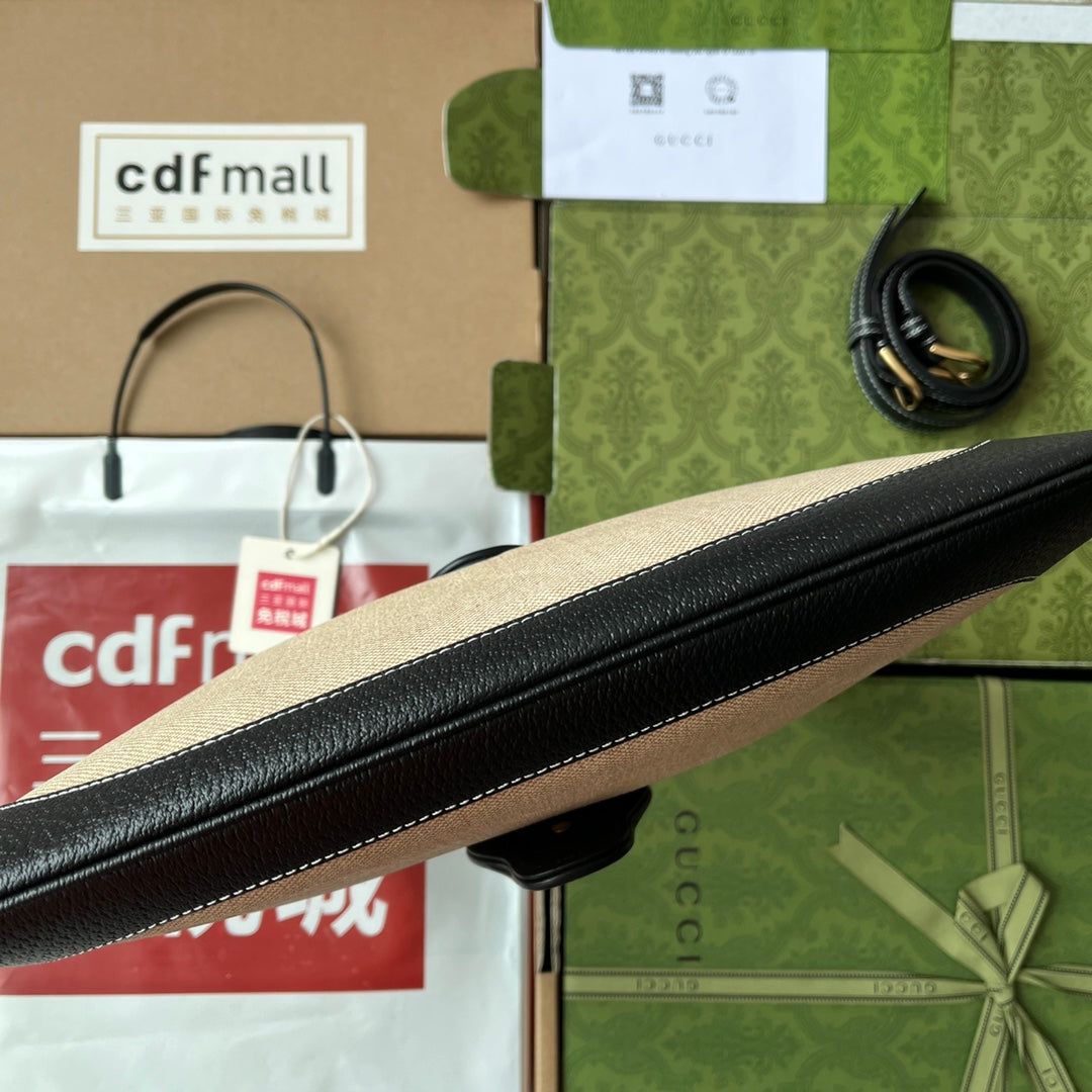 BOLSO MEDIANO APHRODITE 39 DE LONA BEIGE Y PIEL DE BECERRO NEGRA CON HERRAJES DORADOS