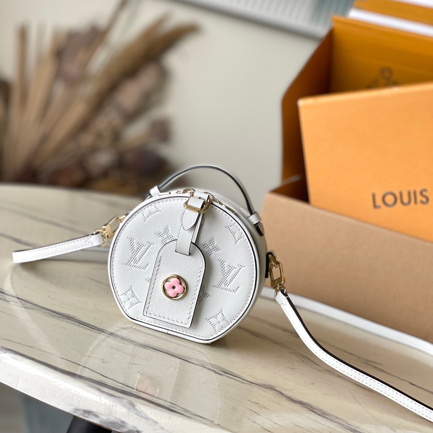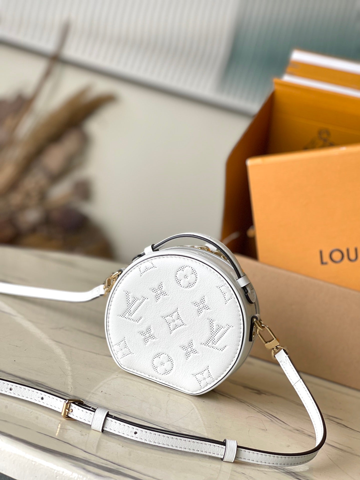MINI BOITE CHAPEAU 13 EN PIEL DE BECERRO PERFORADA CON MONOGRAMA BLANCO