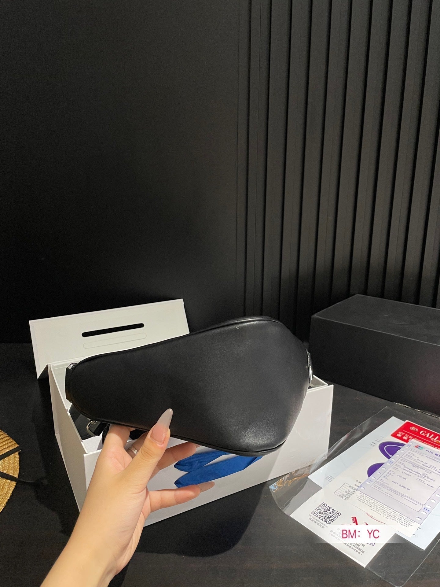 BOLSO DE HOMBRO PRA TRIANGLE 26 DE PIEL DE BECERRO NEGRA