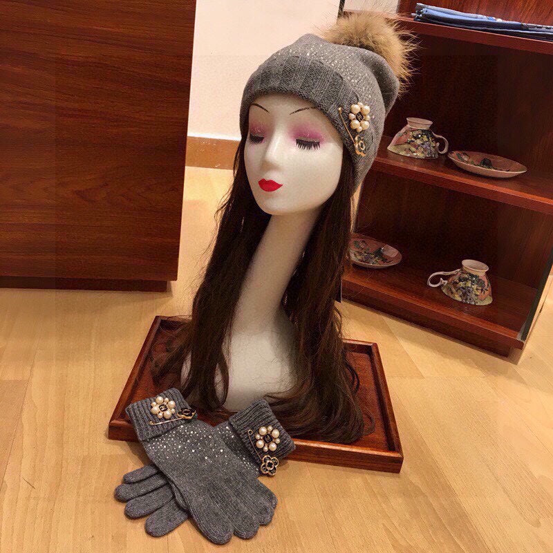 - Conjunto de bufanda, gorro y guantes de punto de cachemira