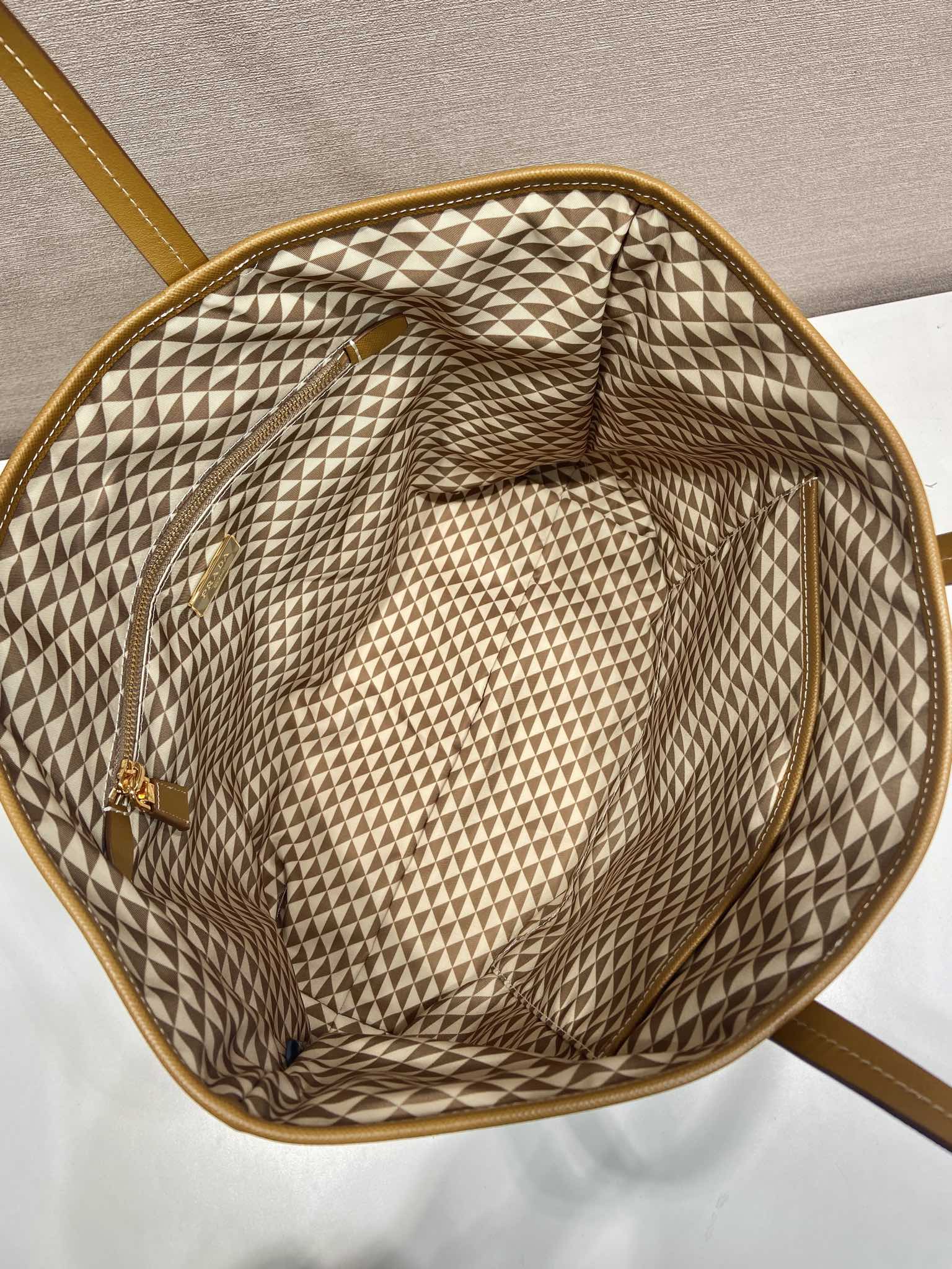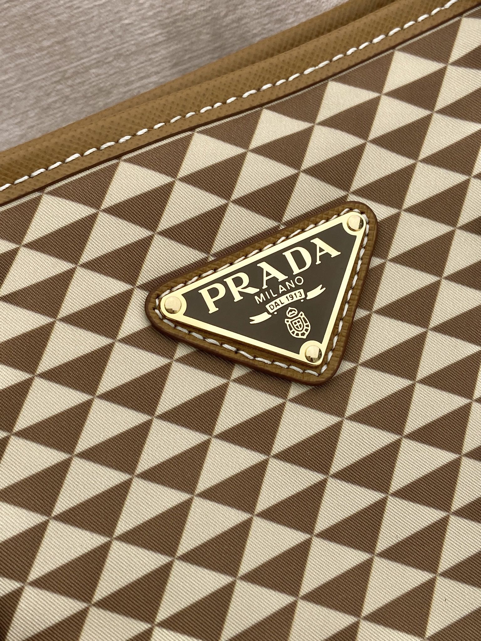 BOLSA DE MANO 33 EN TELA BORDADA CON ESTAMPADO DE TRIÁNGULOS CREMA MEZCLA MARRÓN