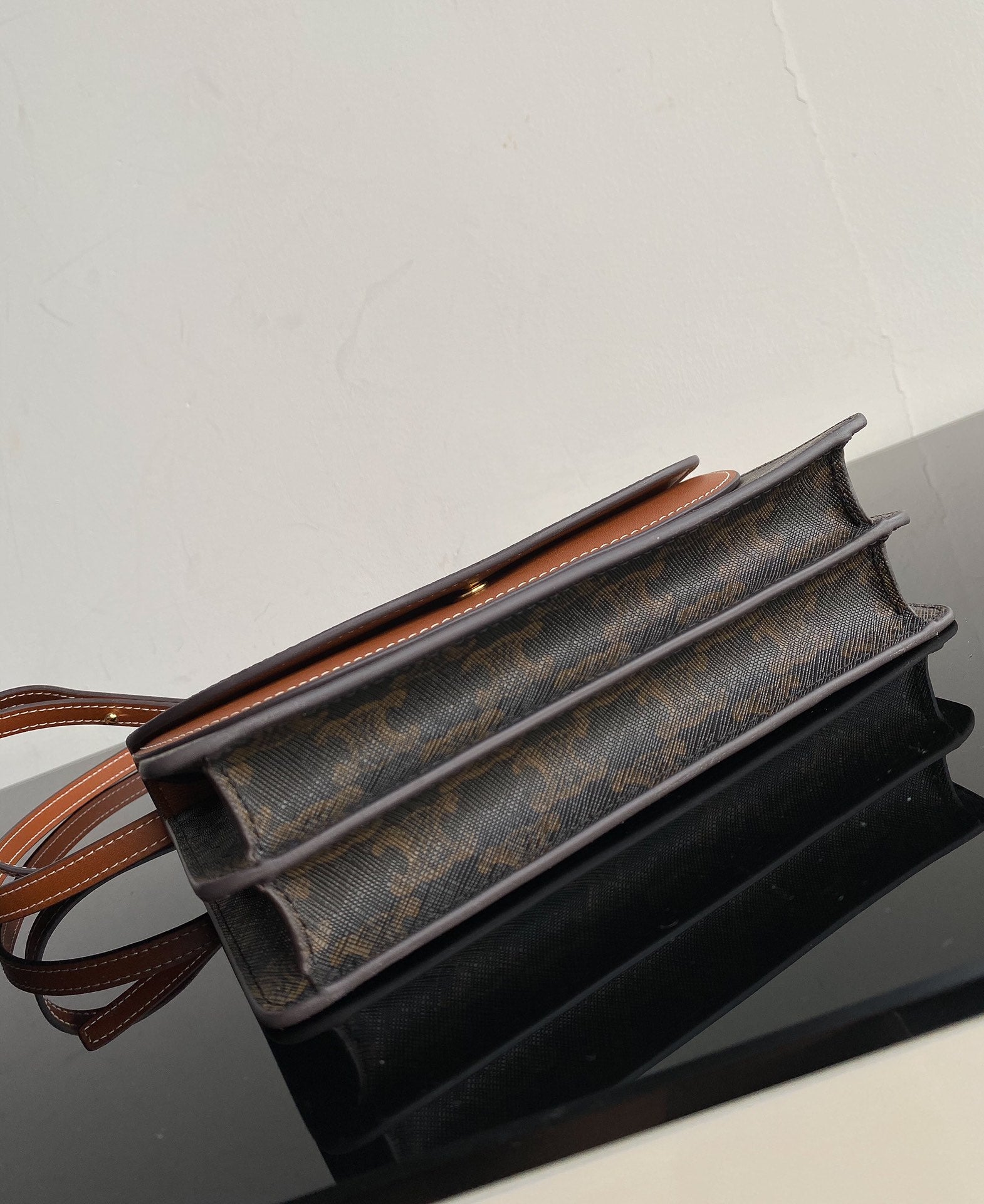 BOLSO TRIPHOME 20 DE DOBLE CAPA DE PIEL DE BECERRO CON ESTAMPADO NEGRO Y MONOGRAMA