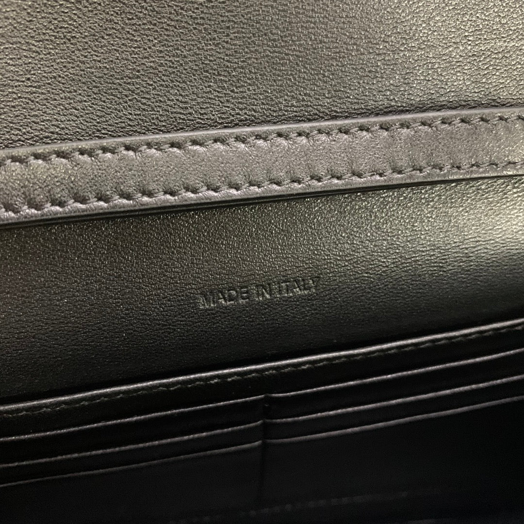 CARTERA CON CADENA MARGO 19 EN PIEL DE BECERRO LISA NEGRA CON HERRAJES DORADOS