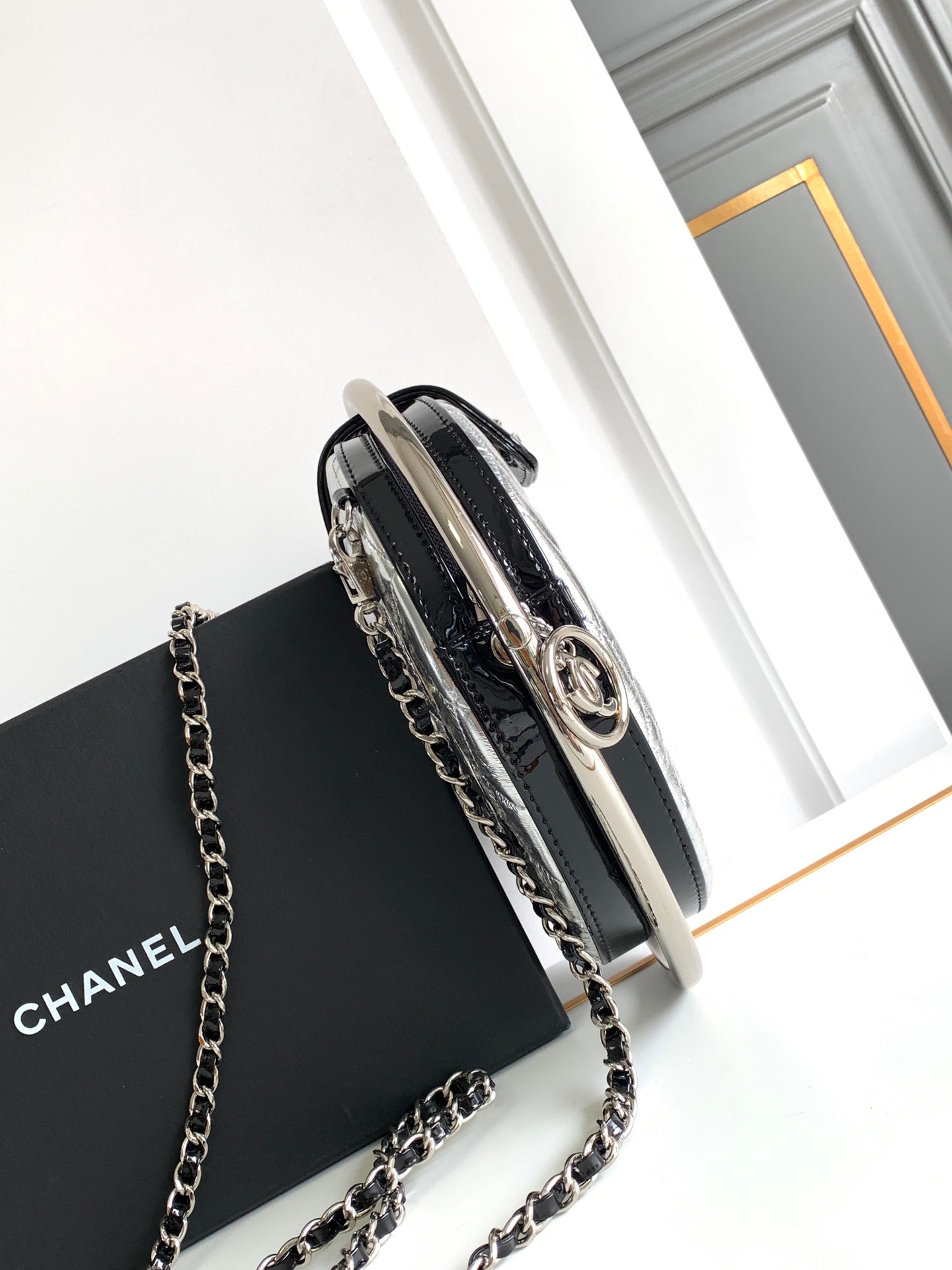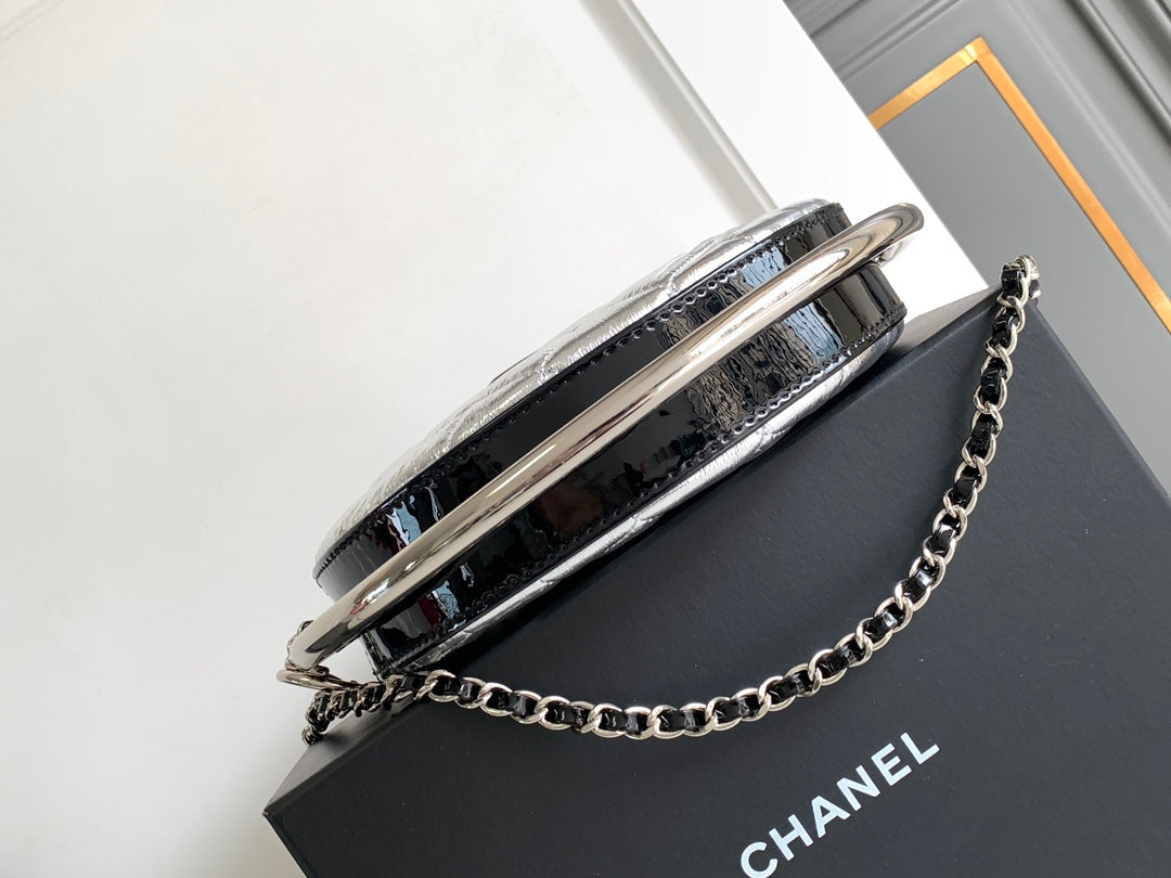 Sac à chaîne CC 22 EARTH GLOBE ORB en cuir de veau argenté