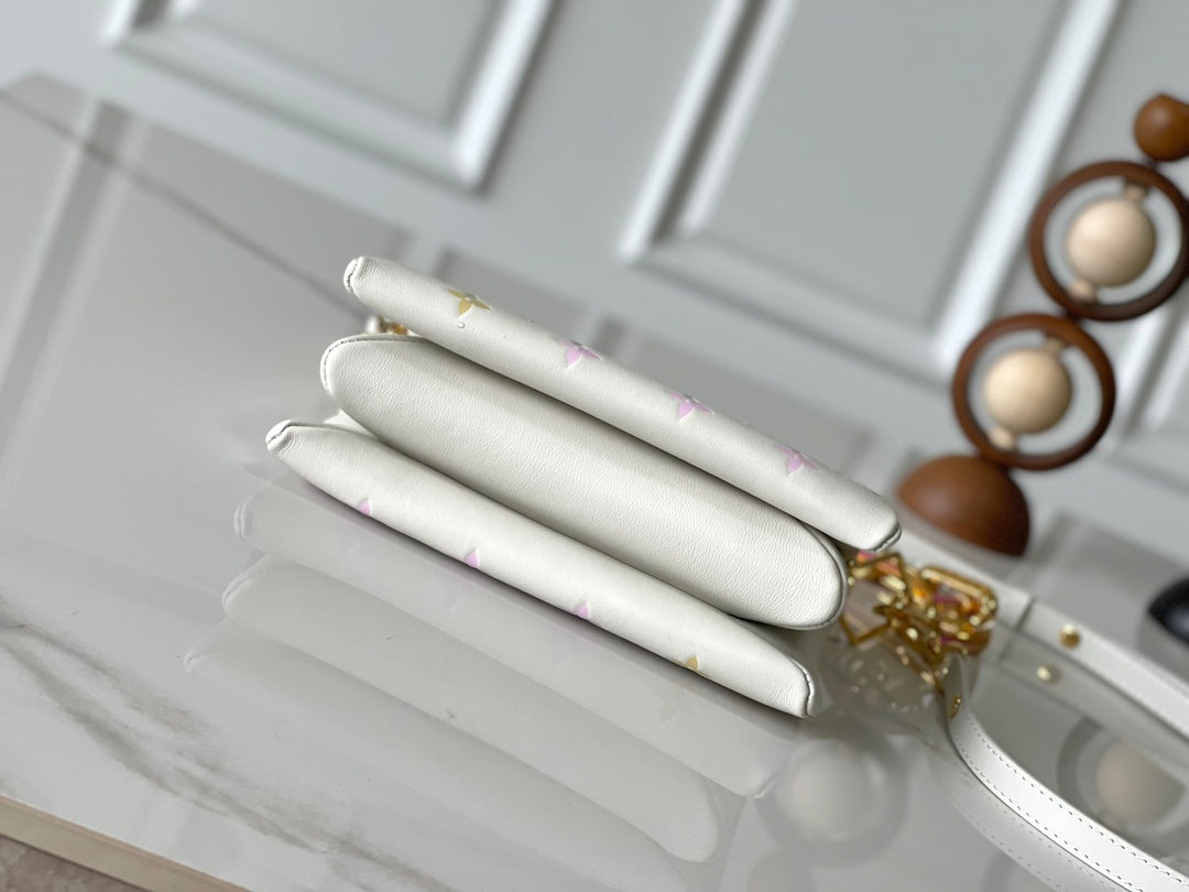 COUSSIN BB 21 EN CUIR D'AGNEAU BLANC AVEC MONOGRAMME EN RELIEF ET QUINCAILLERIE DORÉ