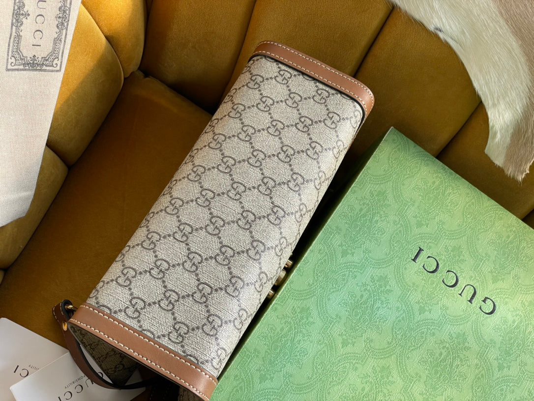 SAC À BANDOULIÈRE GG PADLOCK MOYEN 26 EN TOILE BEIGE ET CUIR DE VEAU MARRON
