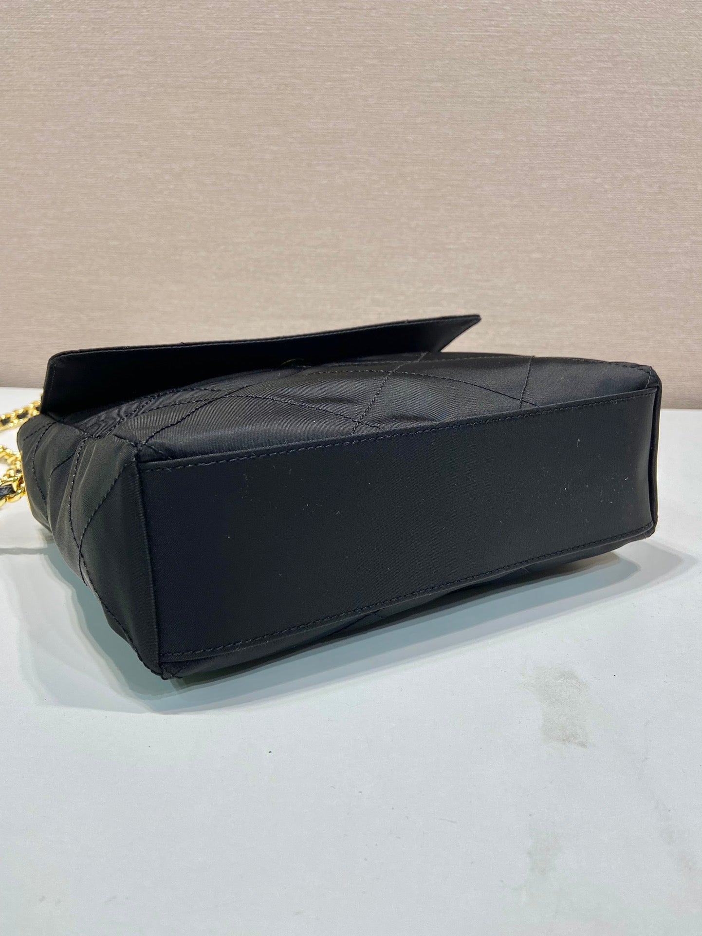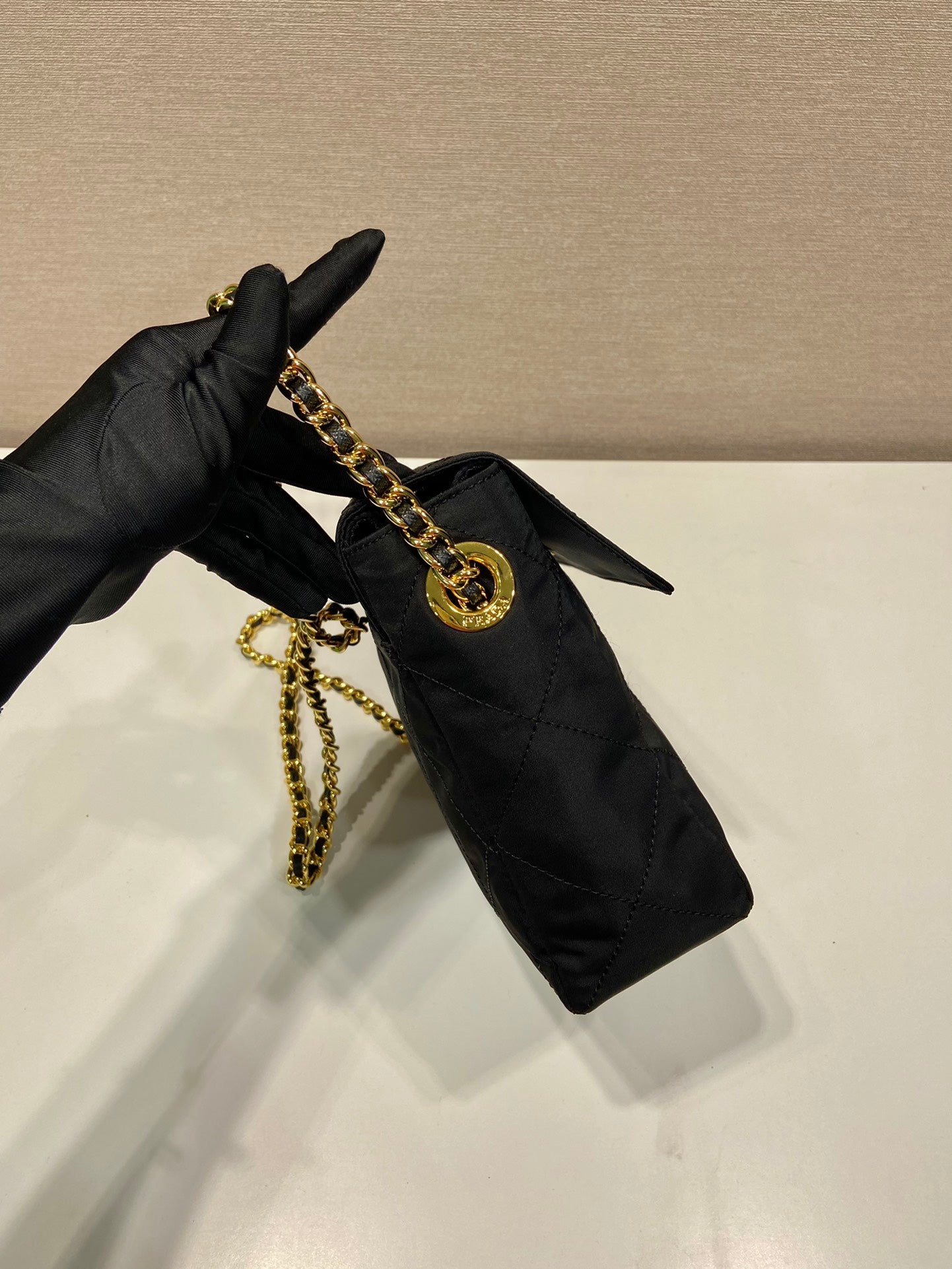 GRAND SAC À RABAT MATELASSÉ 23 EN TISSU RE-NYLON NOIR CHAÎNE DORÉ
