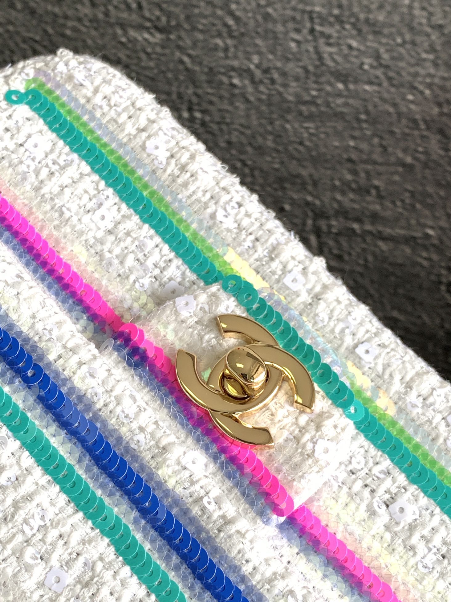 MINI SAC À MAIN CLASSIQUE 20 EN TWEED BLANC BRODÉ À PAILLETTES
