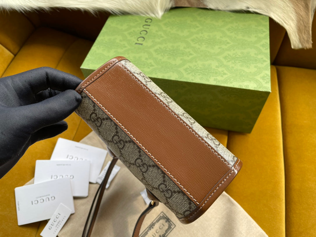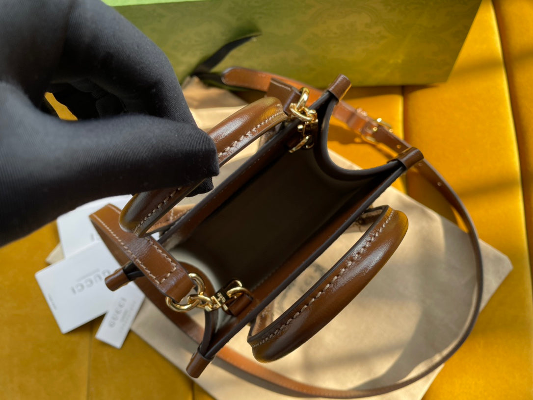 MINI SAC TOTE 20 EN TOILE BEIGE ET CUIR DE VEAU MARRON