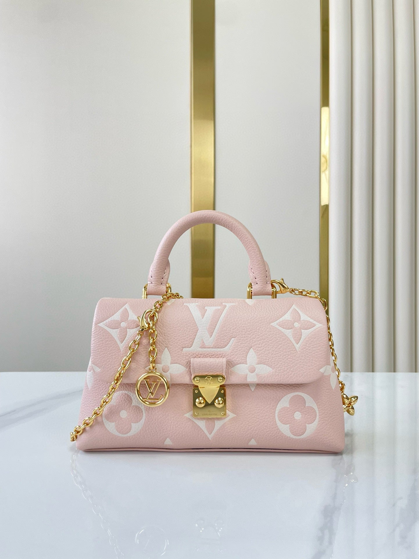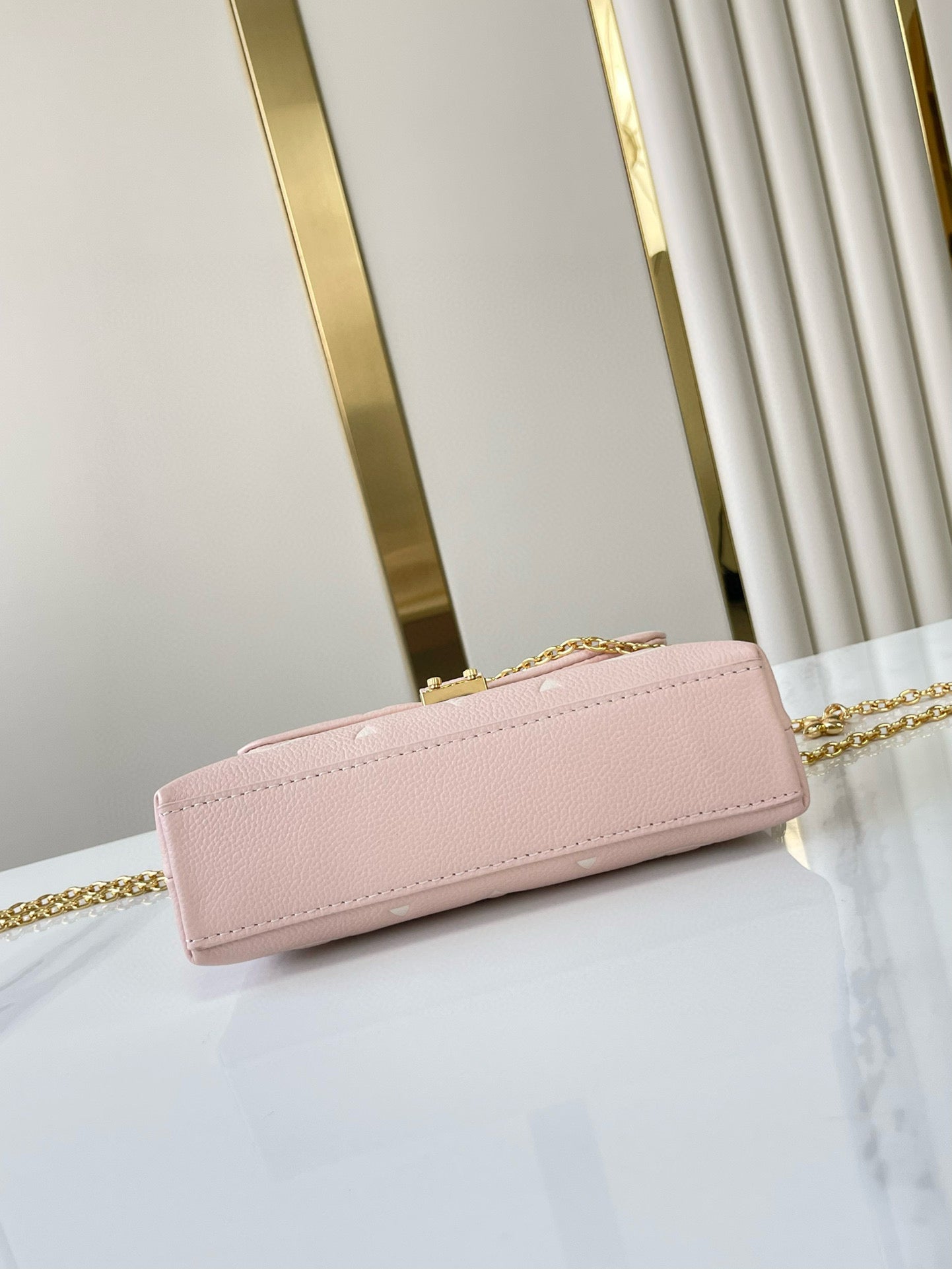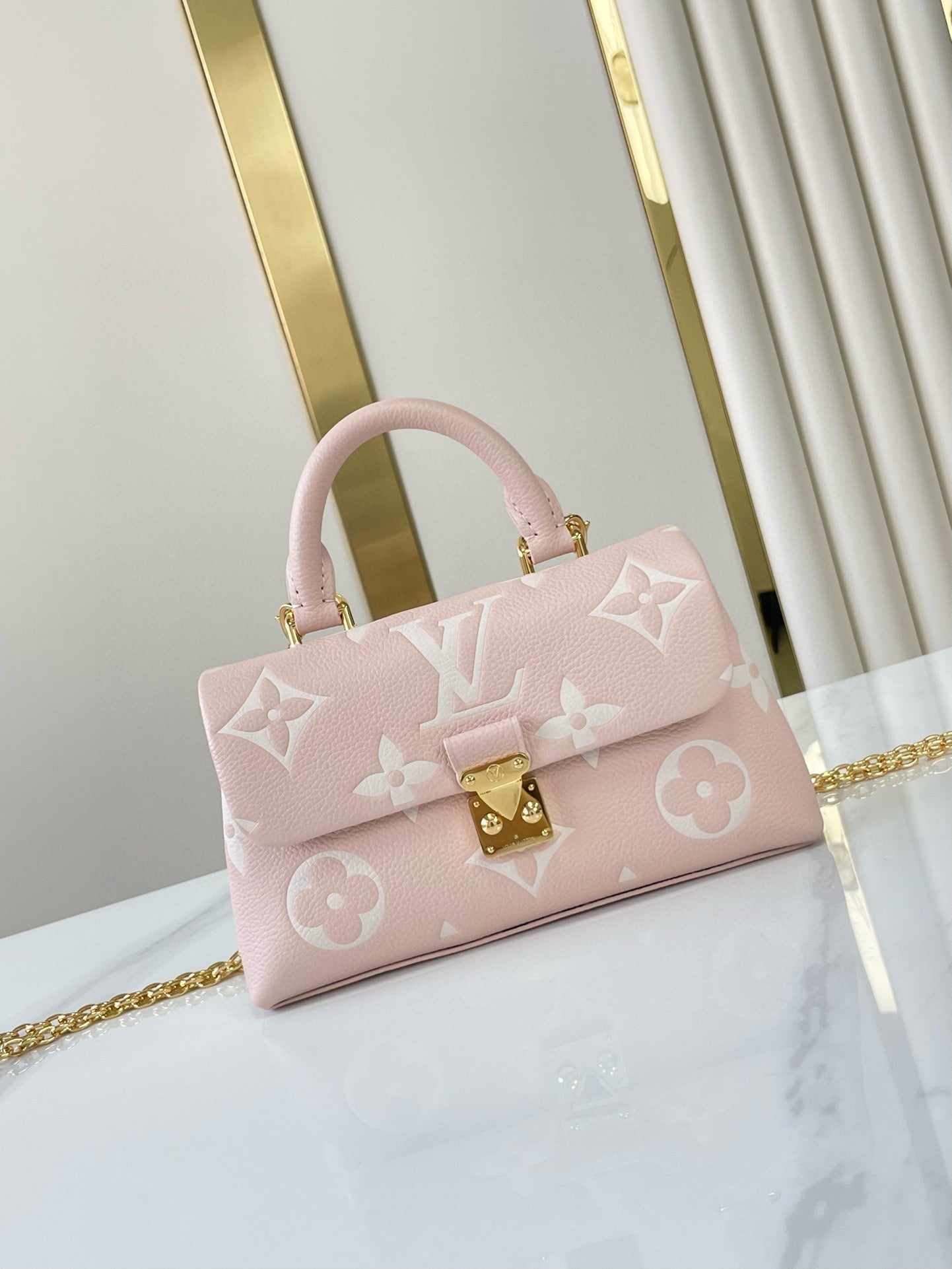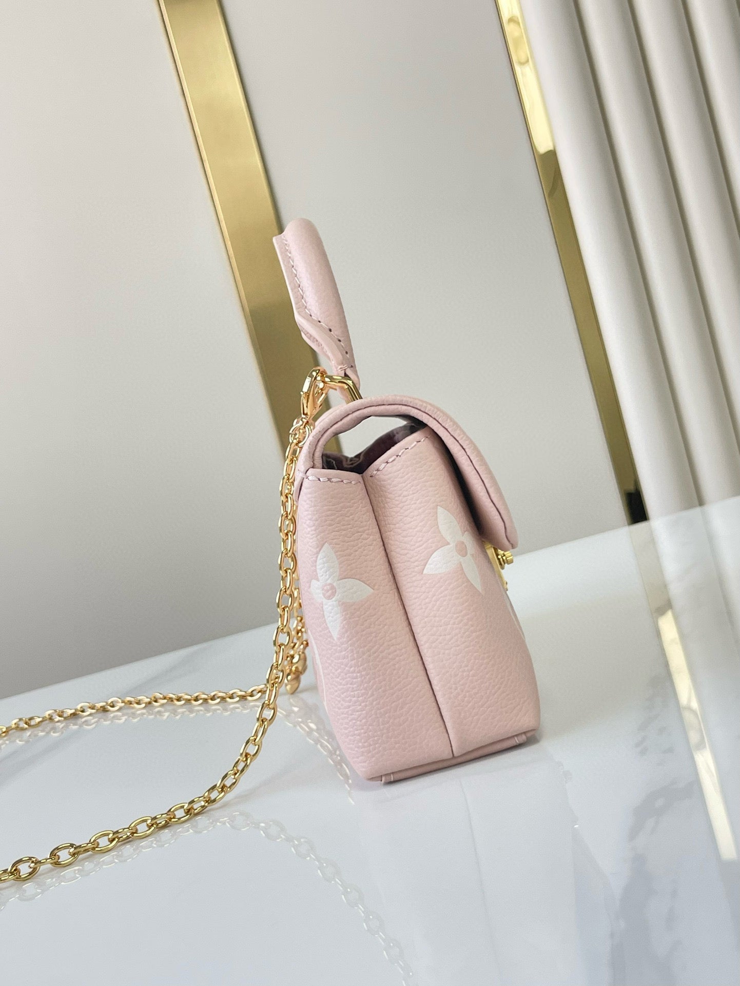 NANO MADELEINE 21 EN CUIR DE VEAU ROSE GAUFRÉ, QUINCAILLERIE DORÉ