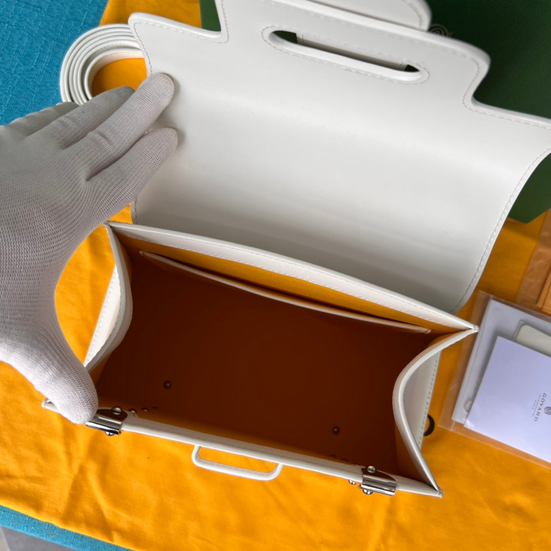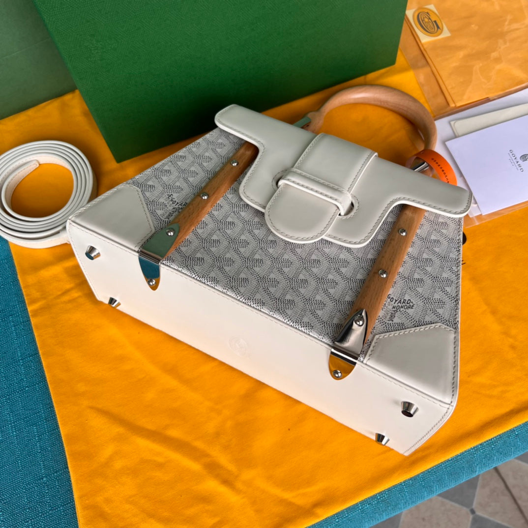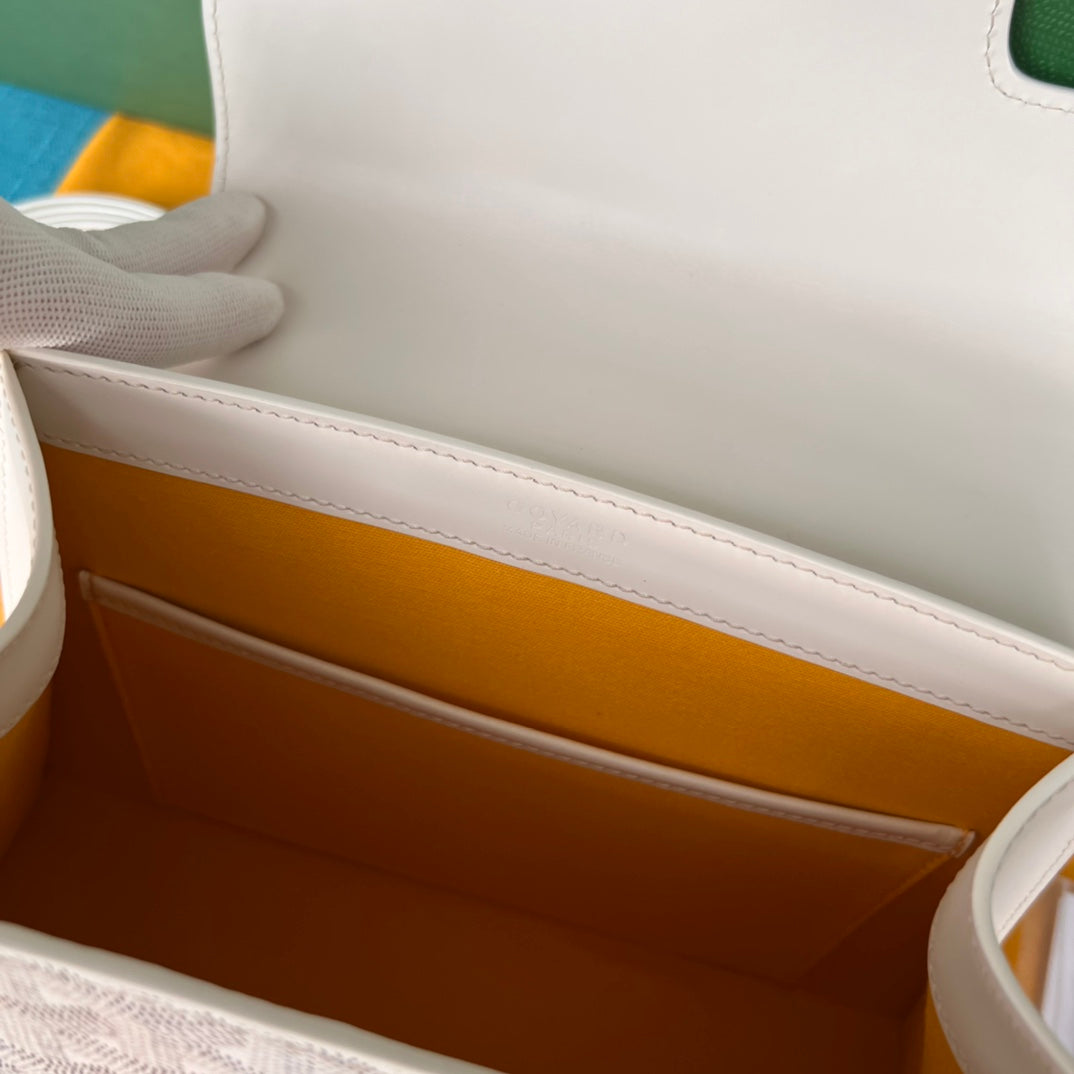 SAC SA?GON PM 28 EN TOILE GOYARDINE BLANCHE ET CUIR DE VEAU