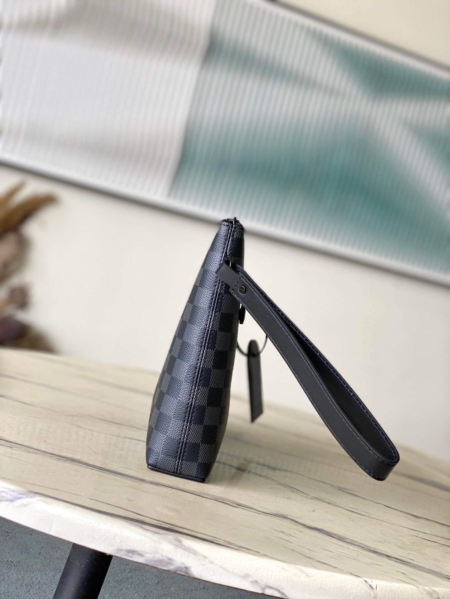 POCHETTE TAKEOFF 30 EN TOILE DAMIER GRAPHITE GRIS NOIR