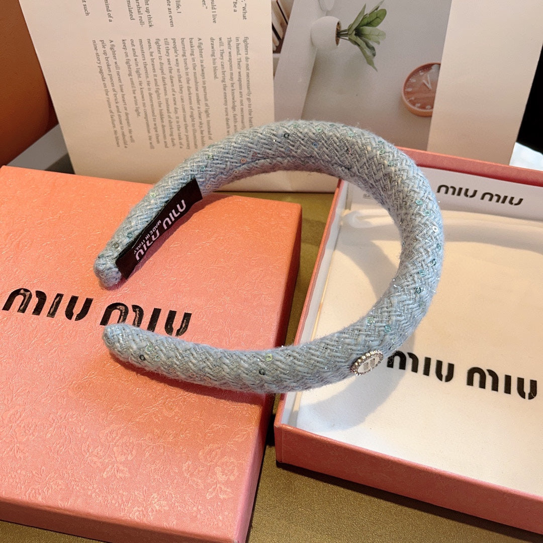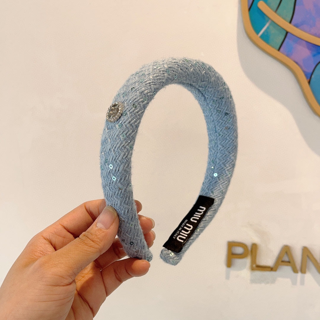 BANDEAU ÉPAIS EN TWEED BLEU CIEL ORNÉ DE PAILLETTES 406044