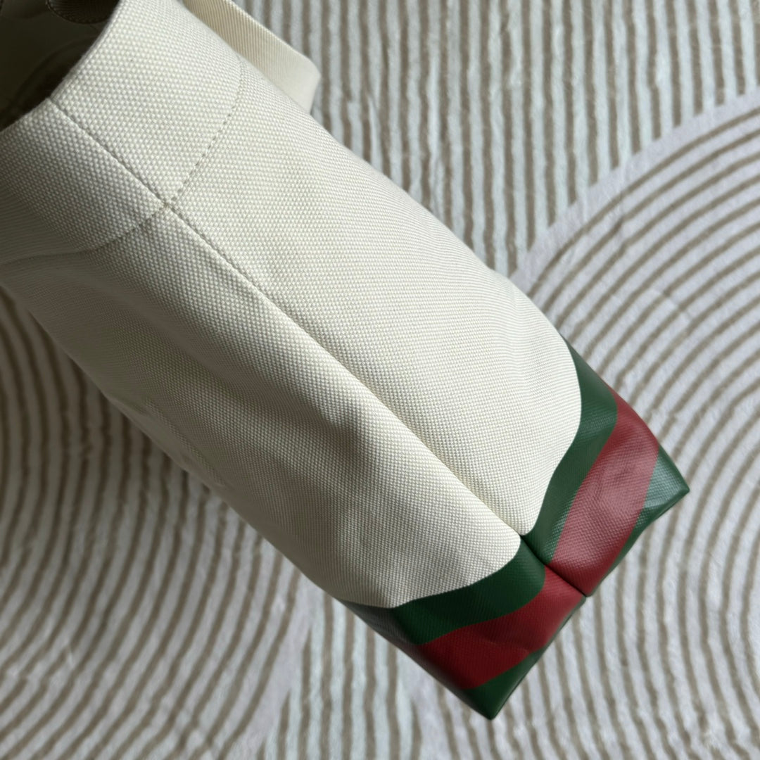 SAC CABAS 40 EN TOILE BLANCHE AVEC BORDURE WEB ET LOGO EN RELIEF