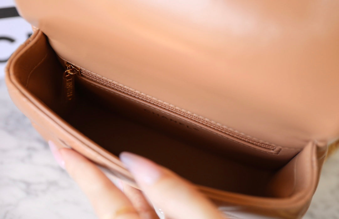24b mini flap bag 19cm top handle beige lambskin