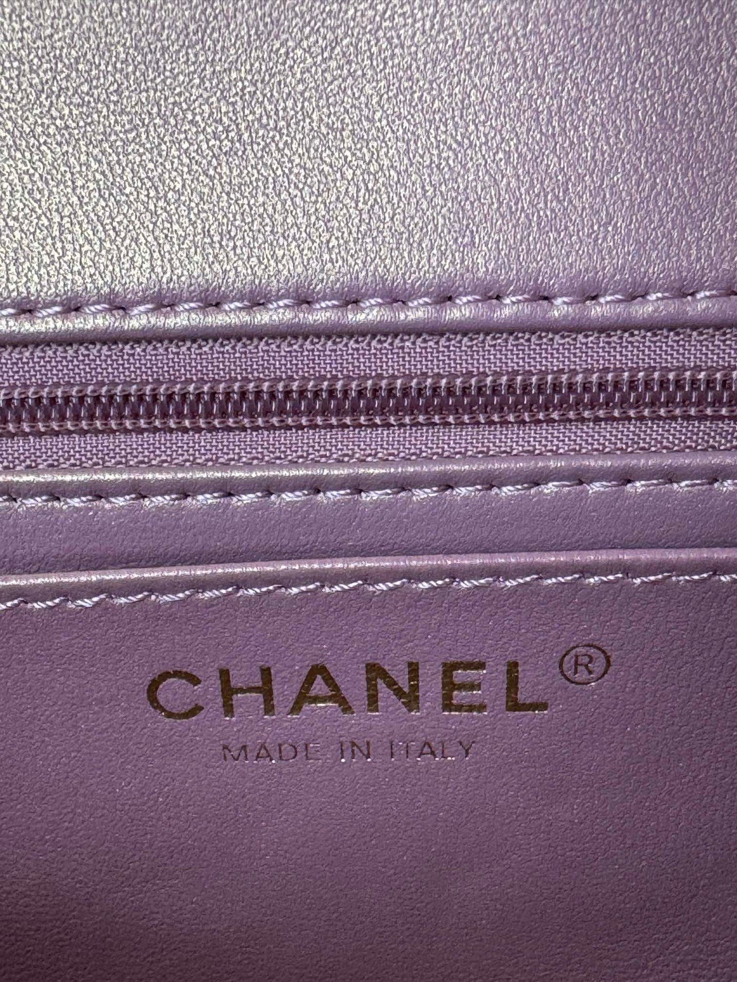 24c mini flap bag 20cm with top handle pink violet calfskin