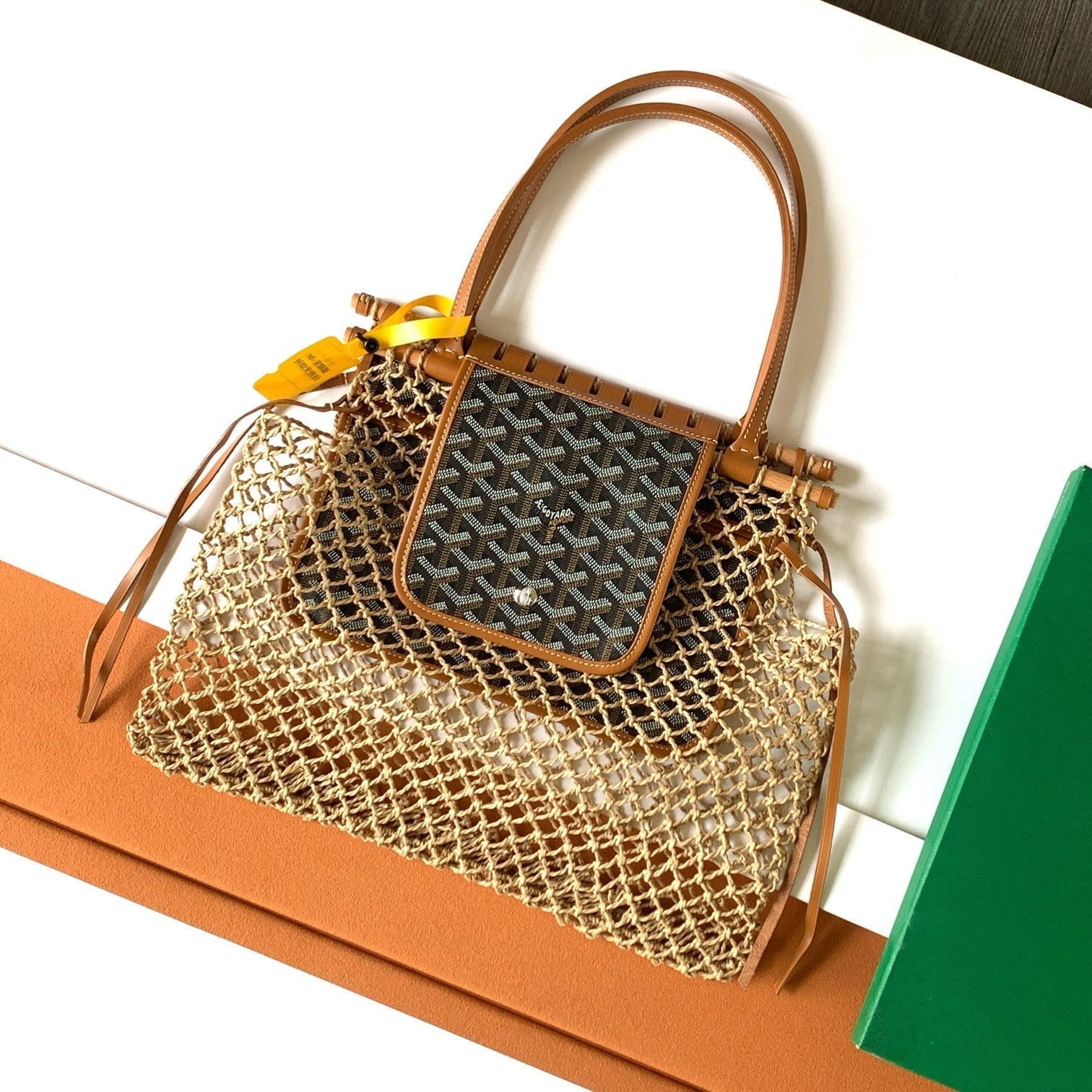 ALIGRE BAG 34 IN BROWN WOVEN RAFFIA AND CALFSKIN
