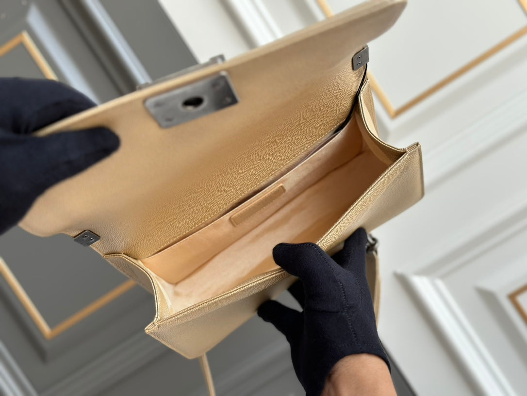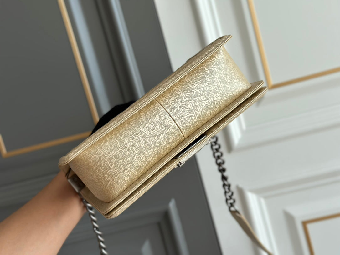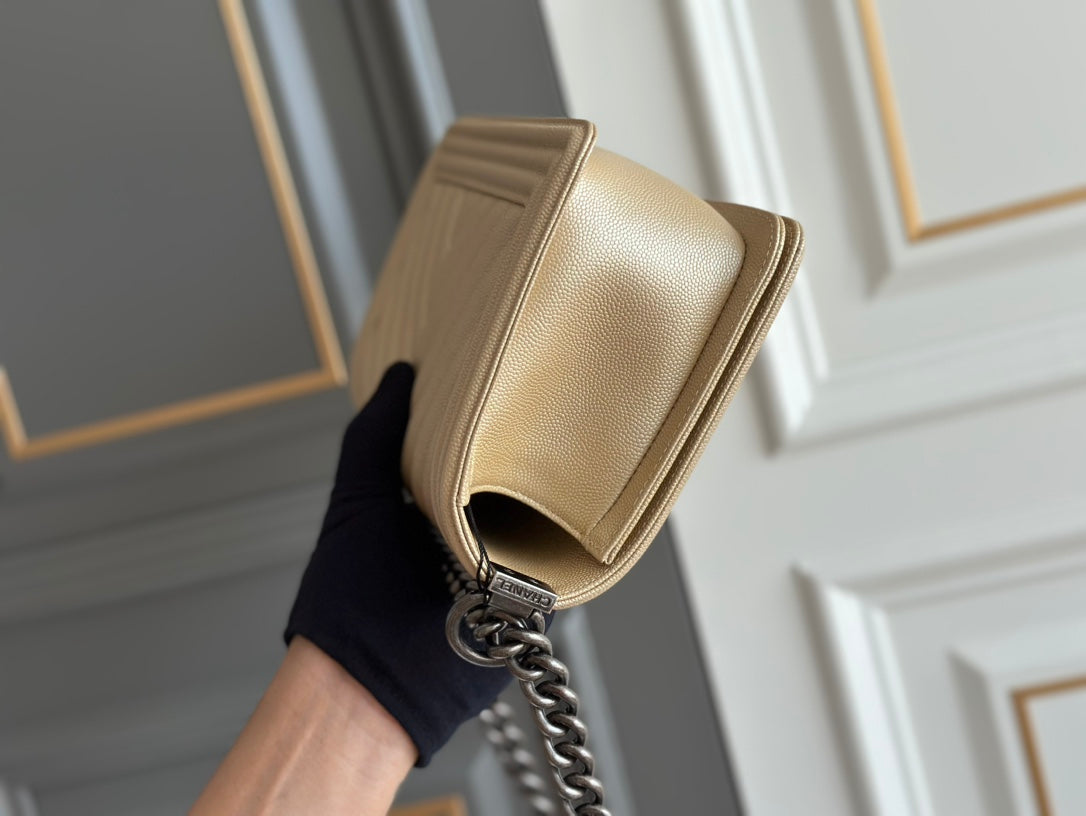 boy medium 25 beige chevron caviar ruthenium hardware