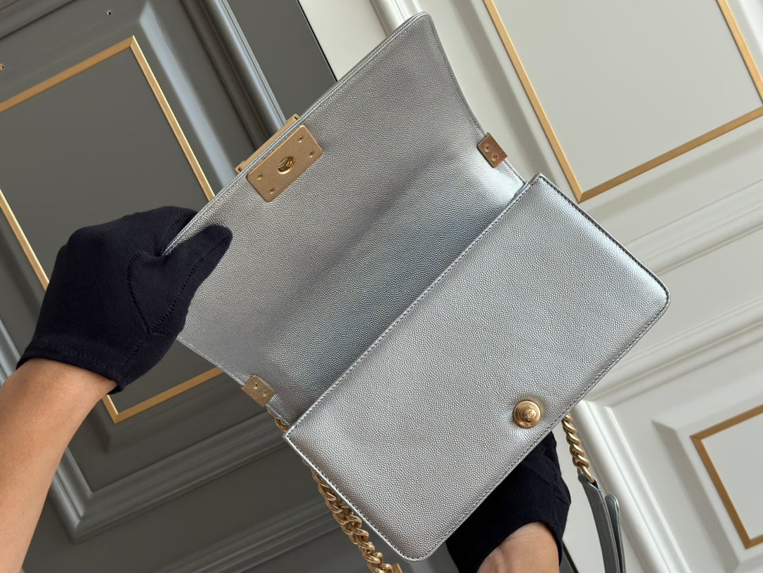 boy medium 25 grey chevron caviar aged gold hardware
