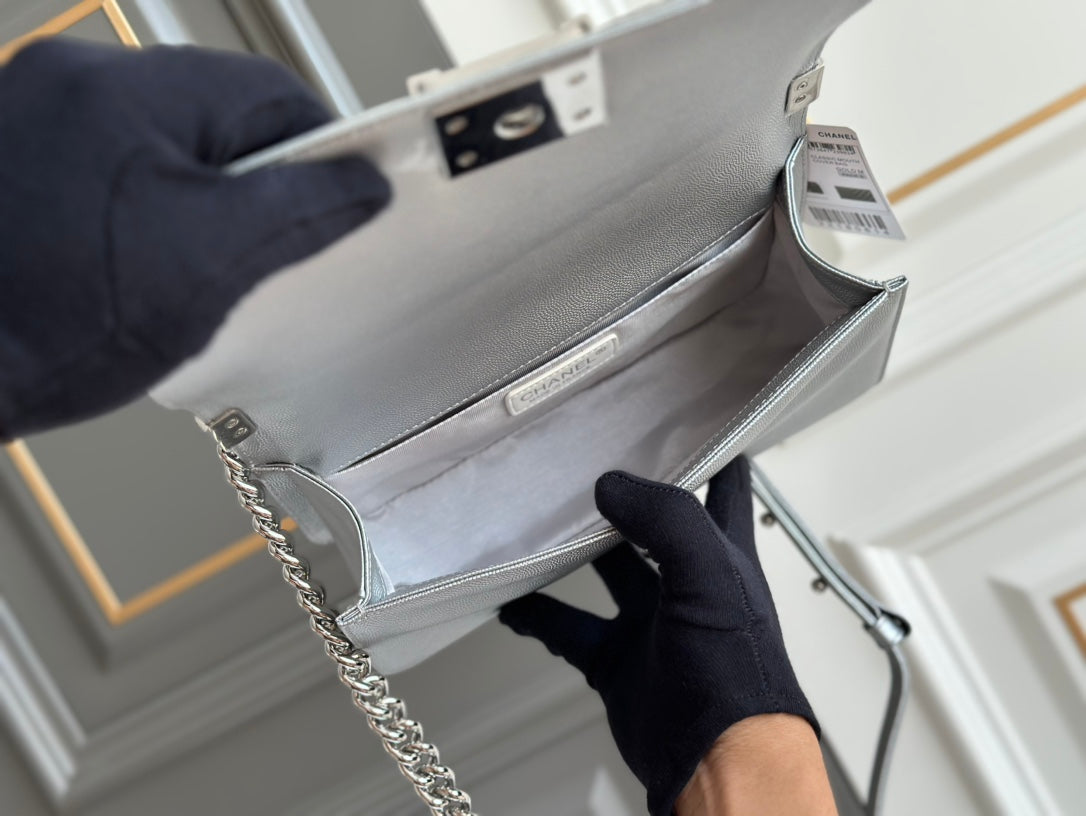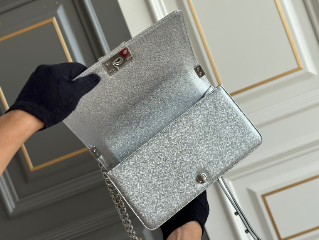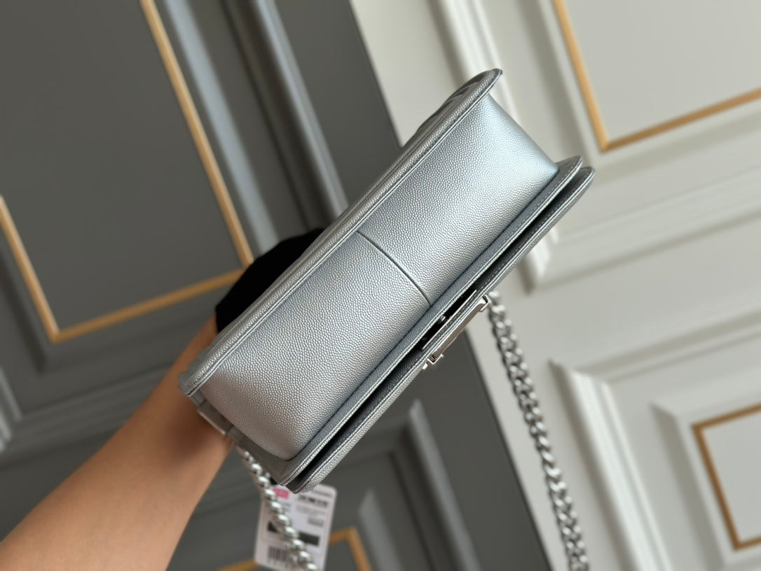 boy medium 25 grey chevron caviar silver hardware