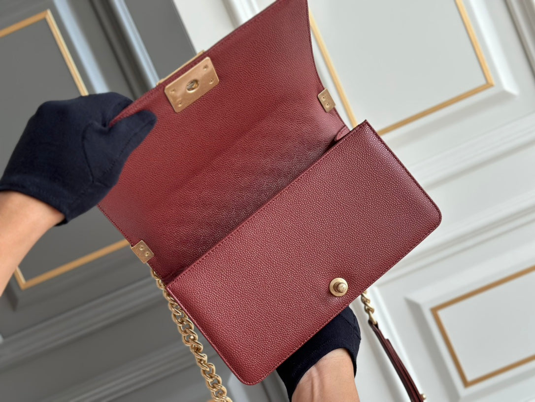 boy medium 25 wine quilted caviar aged ghw