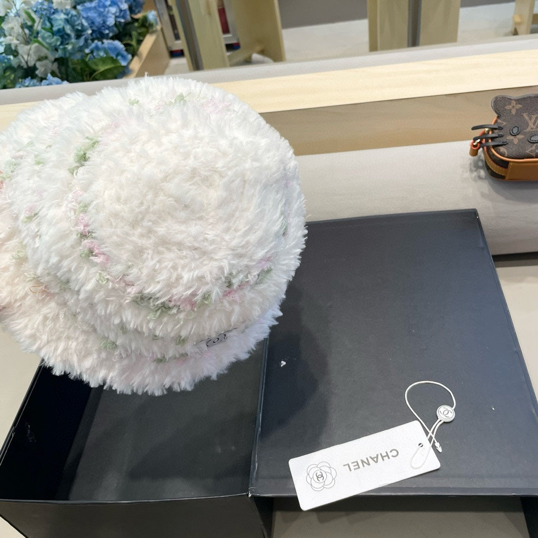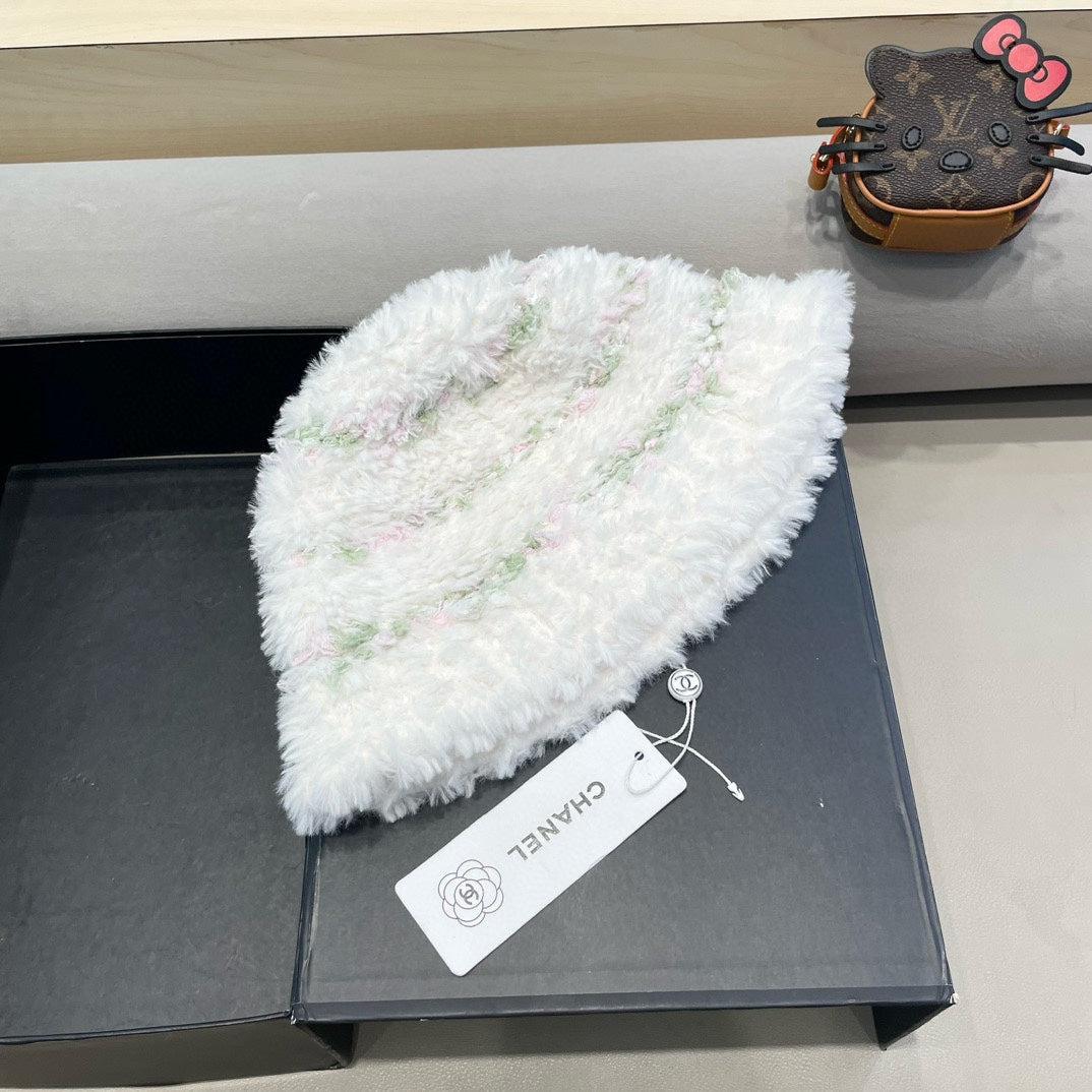 - Stylish plush bucket hat for women, suitable for autumn and winter, designed for warmth with a mixed-color look.