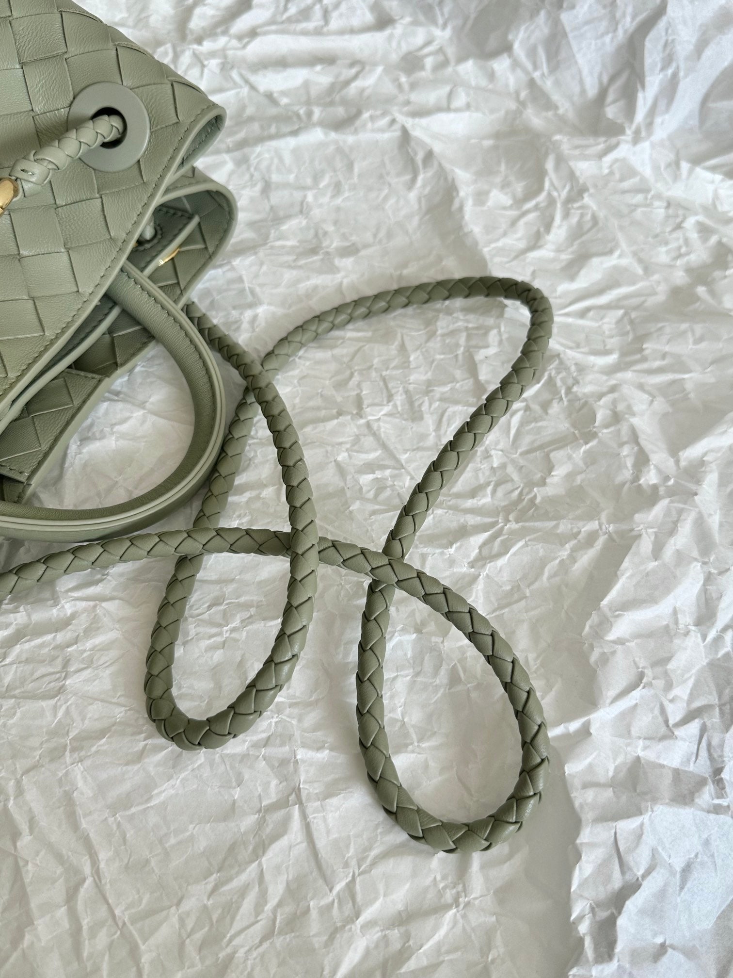 BV SMALL ANDIAMO 25CM LIGHT GREEN LAMBSKIN