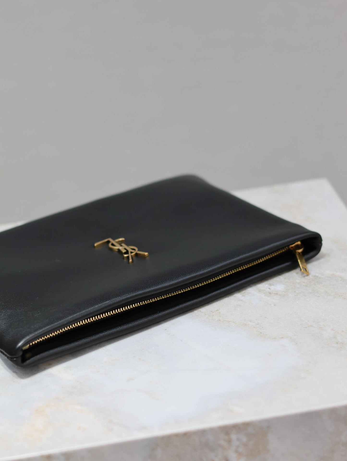 CALYPSO SMALL POUCH 23 IN BLACK SMOOTH LAMBSKIN