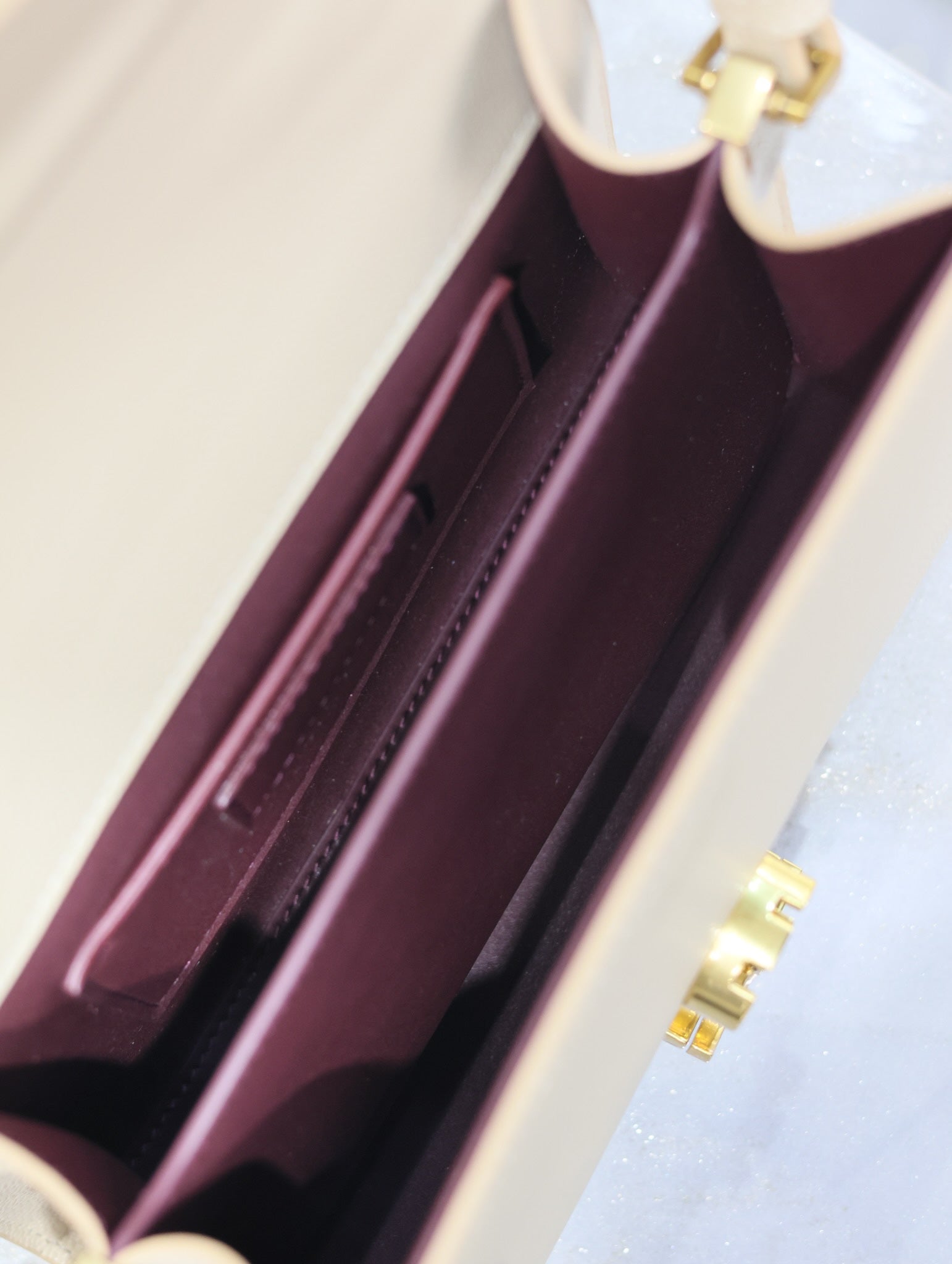 CASSANDRA MINI TOP HANDLE BAG 20 IN BEIGE CALFSKIN GOLD HARDWARE