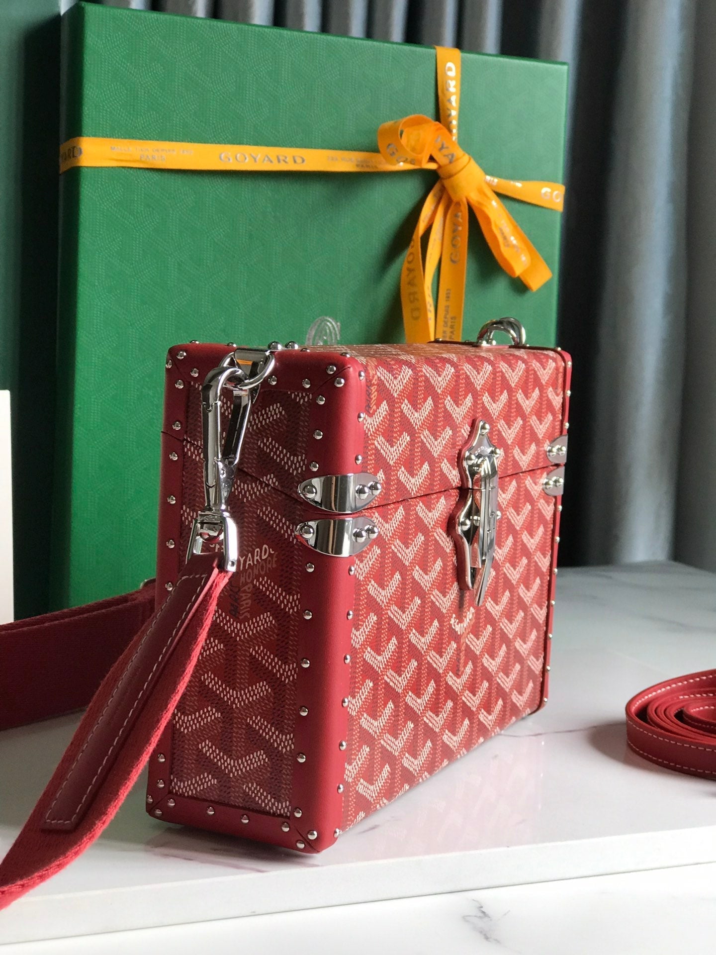 - Material: Goyardine canvas and clamecy cowhide