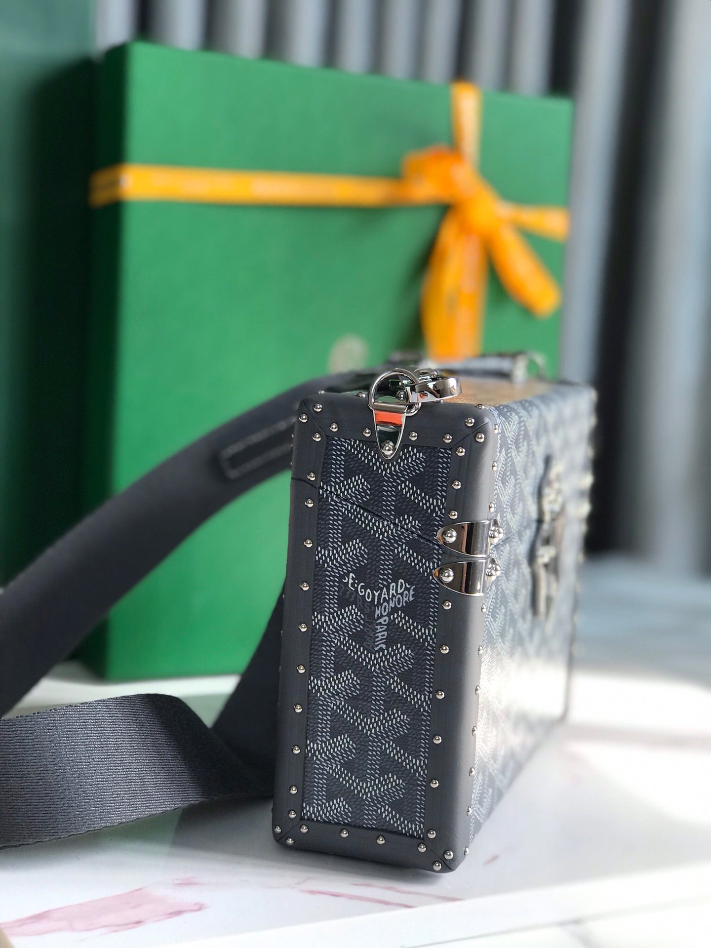 CASSETTE TRUNK BAG 21 IN GREY GOYARDINE CANVAS & CLAMECY COWHIDE