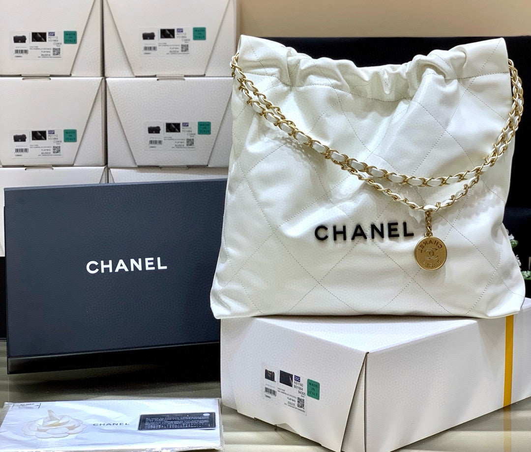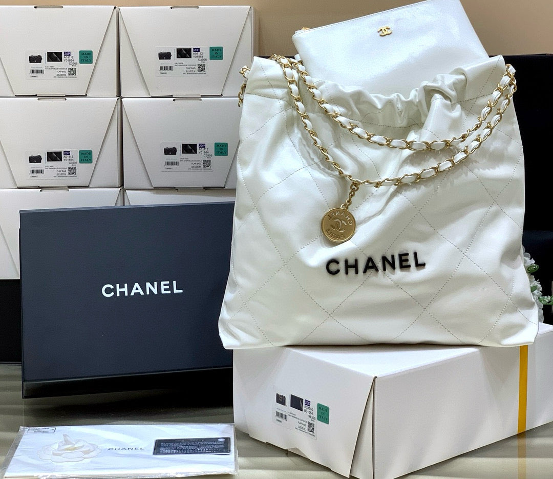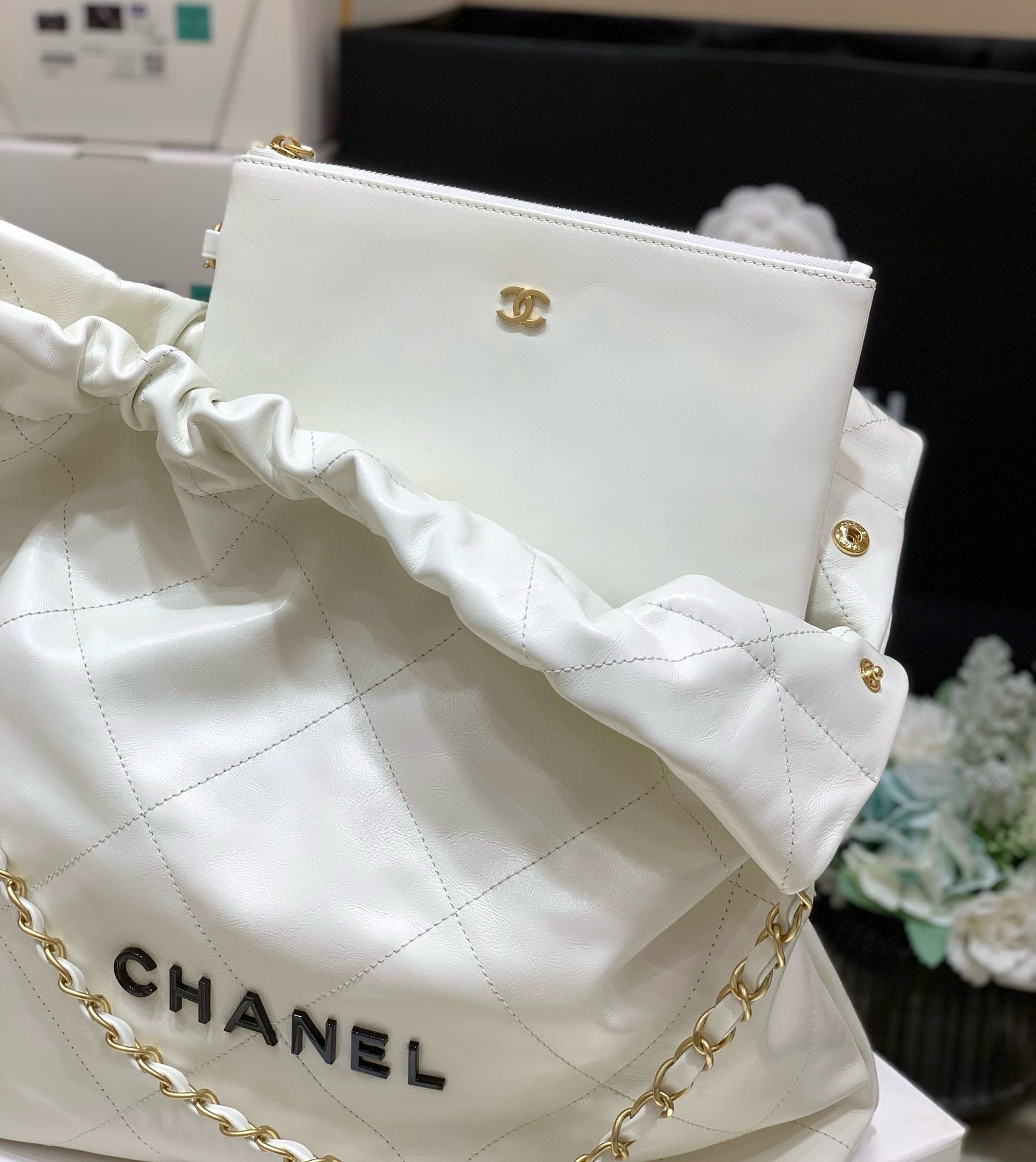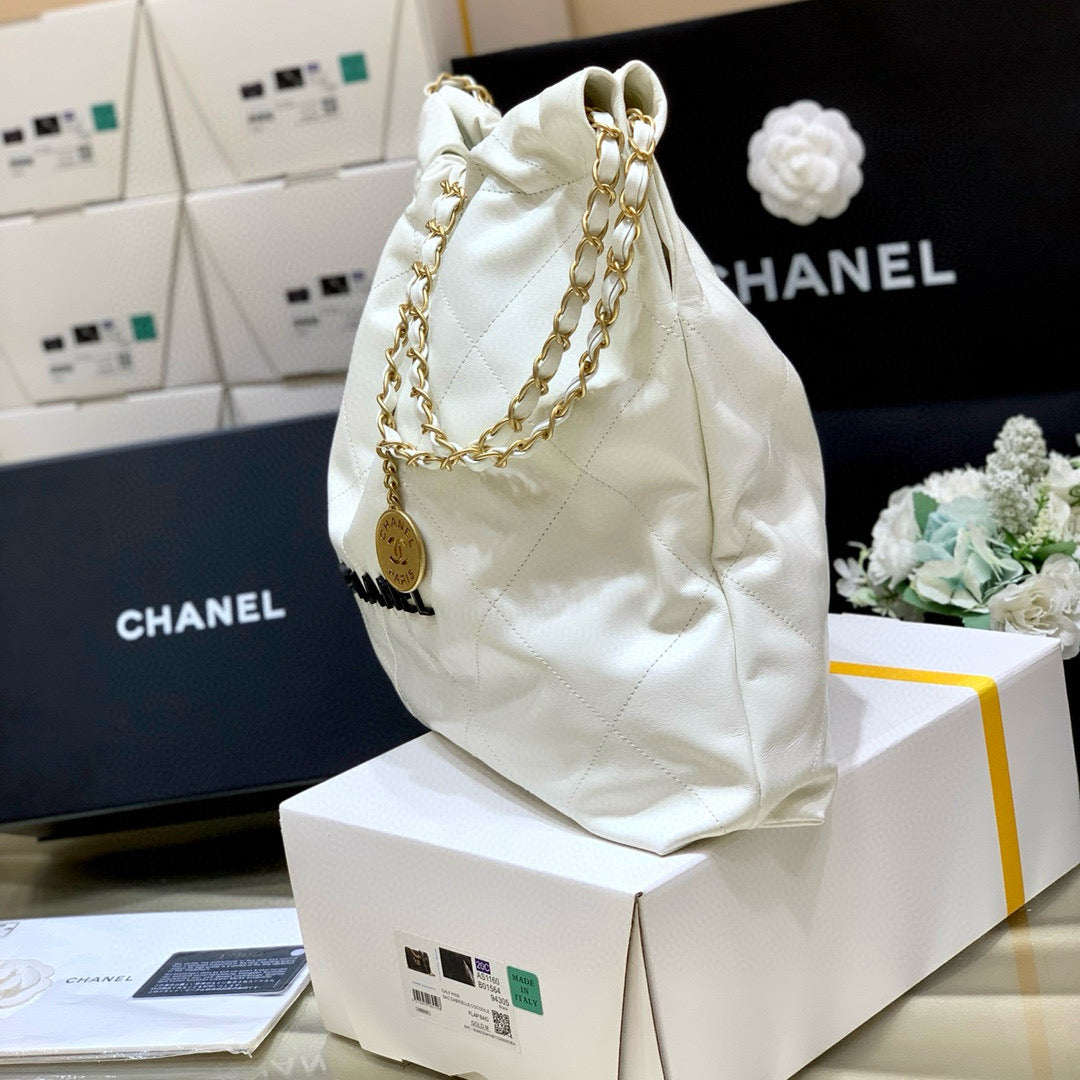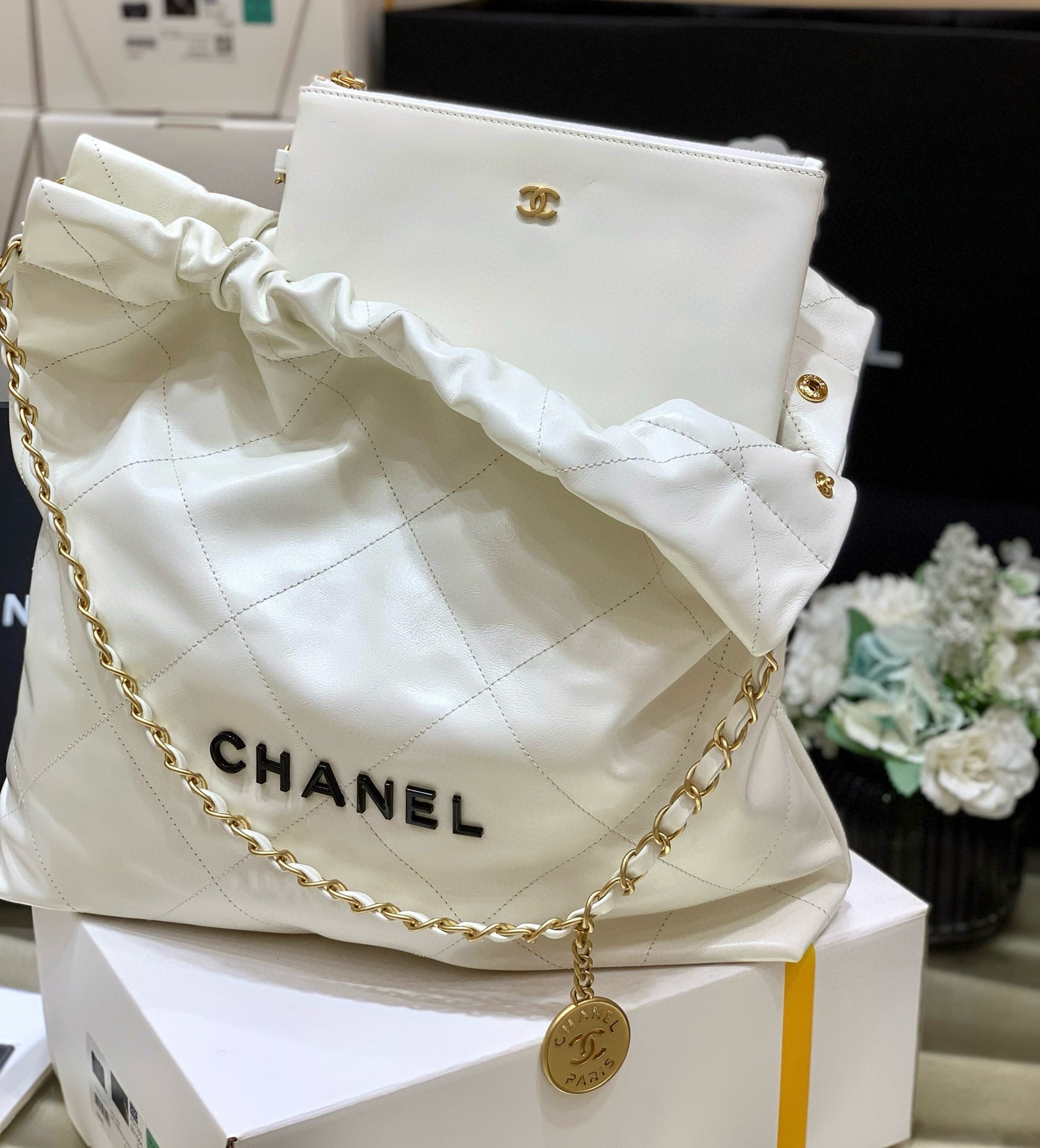 CC 19 HOBO BAG 43CM WHITE CALFSKIN BLACK LOGO GOLD HARDWARE