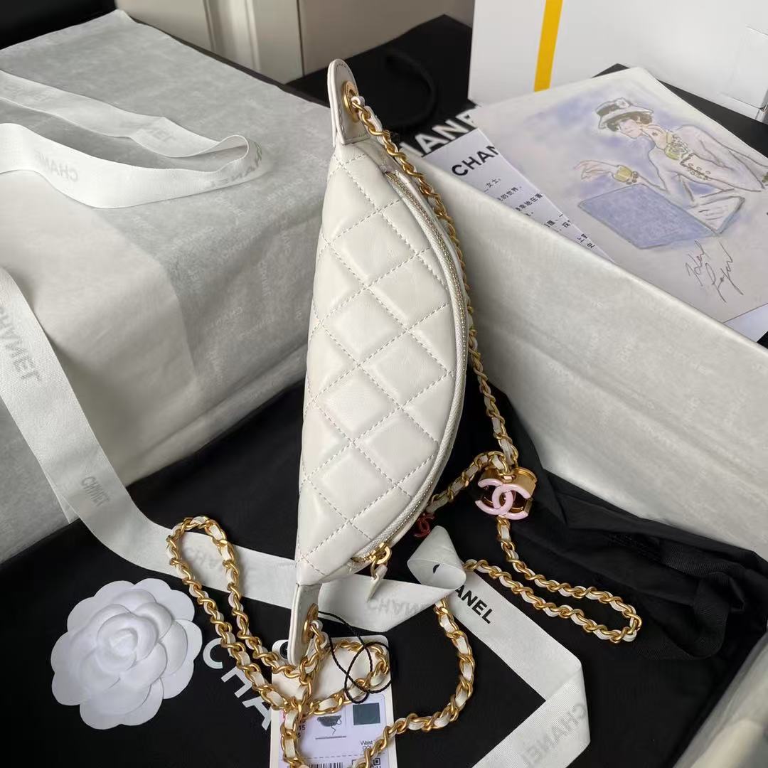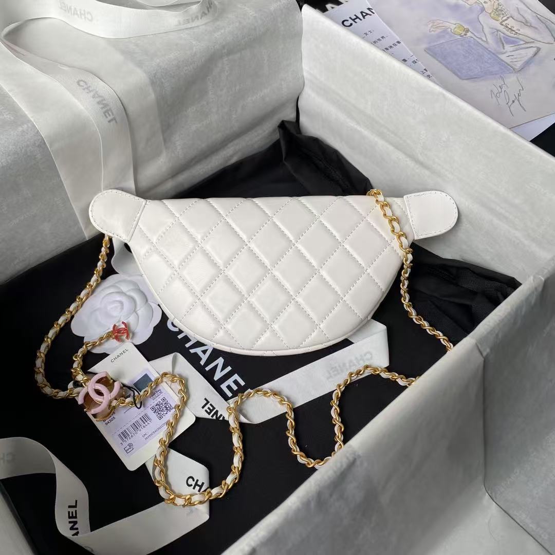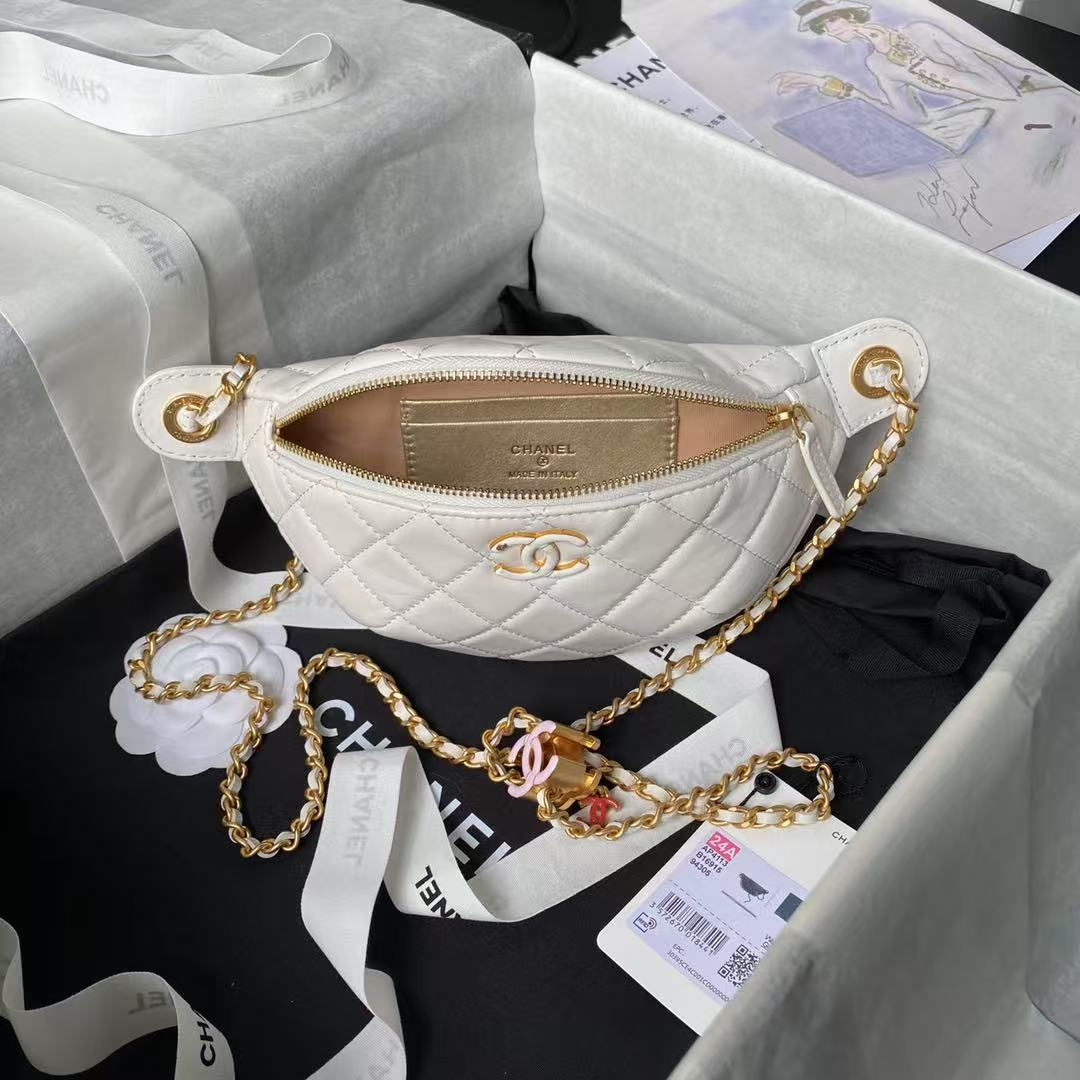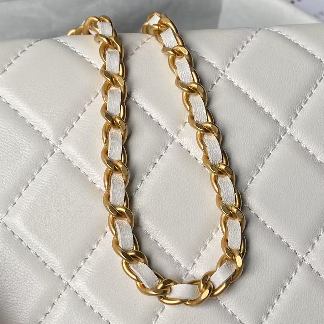 CC 24A Pouch 27cm Classic Bag White Lambskin