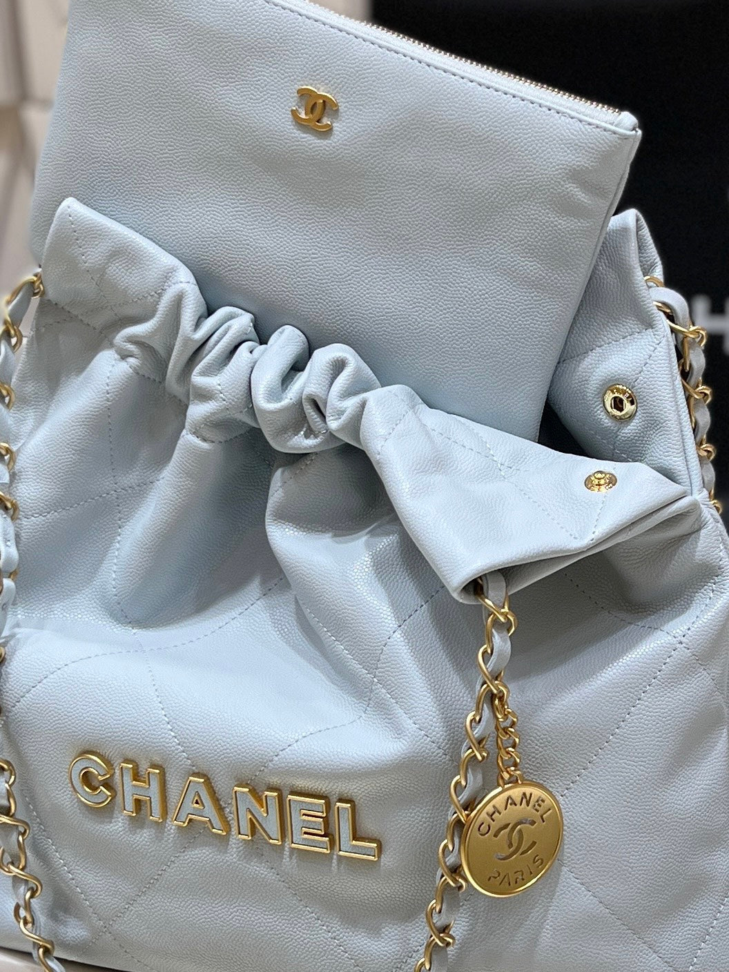 CC 24K Hobo 22 Bag Cloud Blue Grained Calfskin