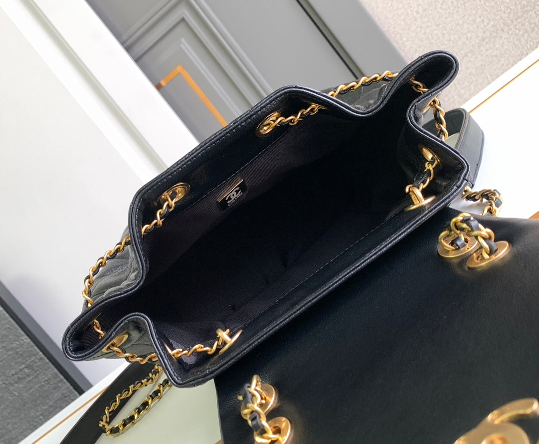CC 25 BACKPACK IN BLACK CALFSKIN GOLD HARDWARE