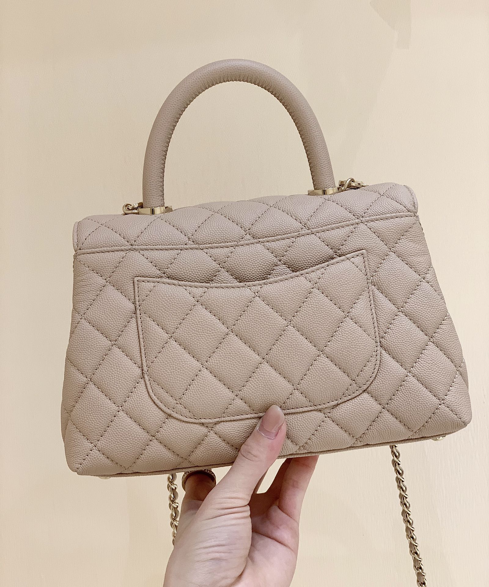 CC Coco Hanle Small 23cm Light Beige Grained Calfskin Gold Hardware