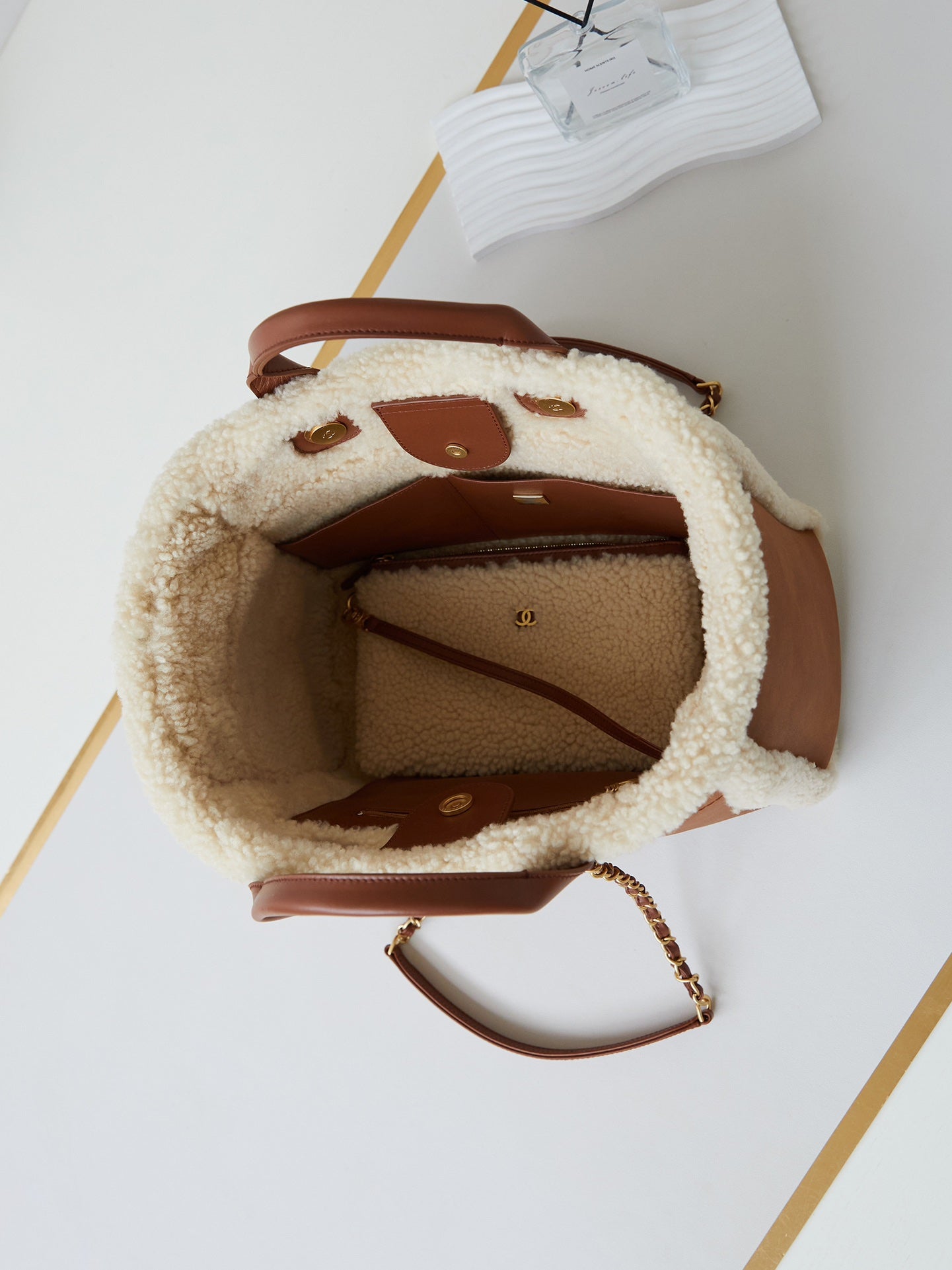 CC Shopping Bag 32cm Brown Beige Sherling Lambskin