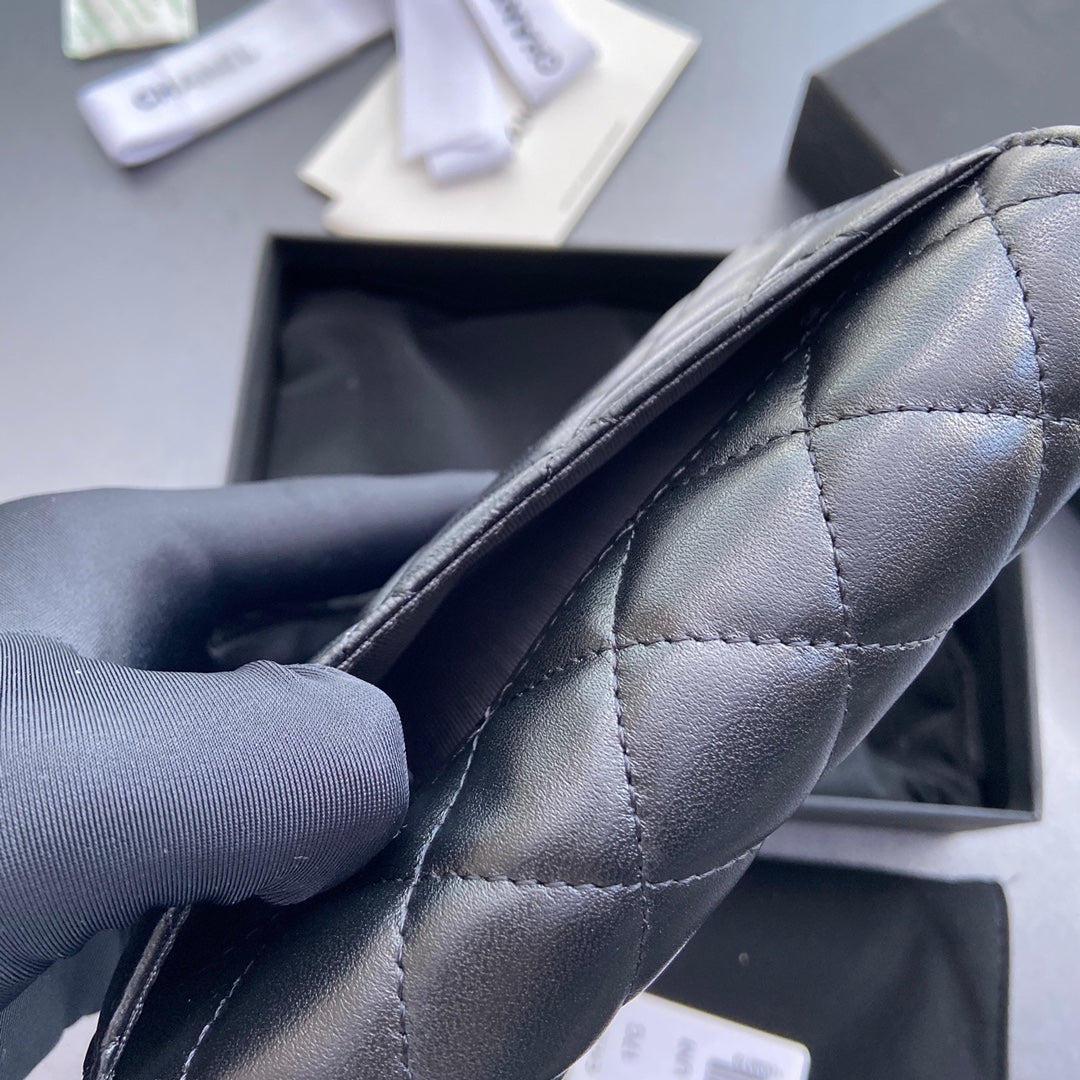 cc wallet 15cm black lambskin gold hardware