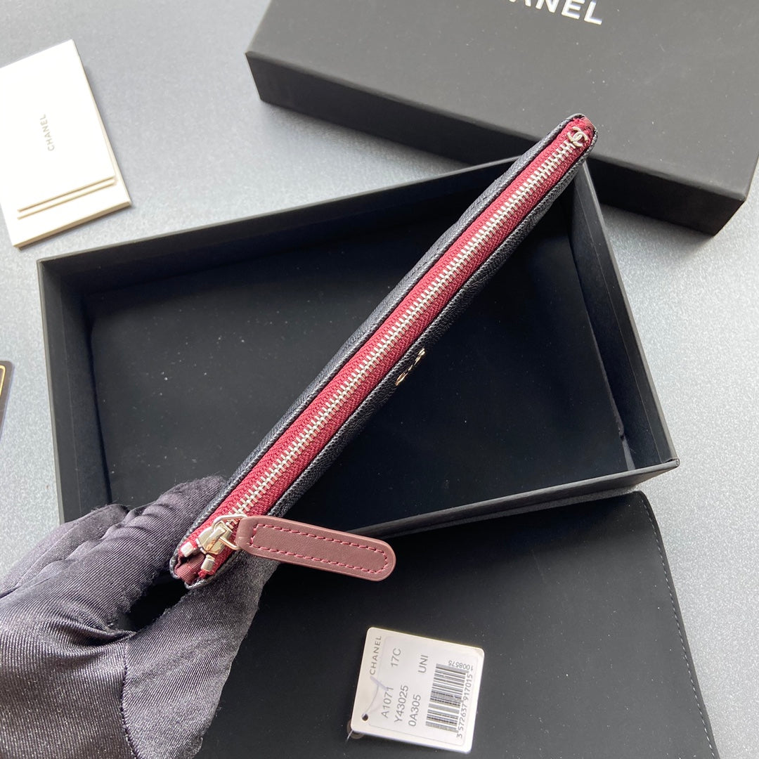 cc zipped wallet 20cm black quilted caviar silver hardware