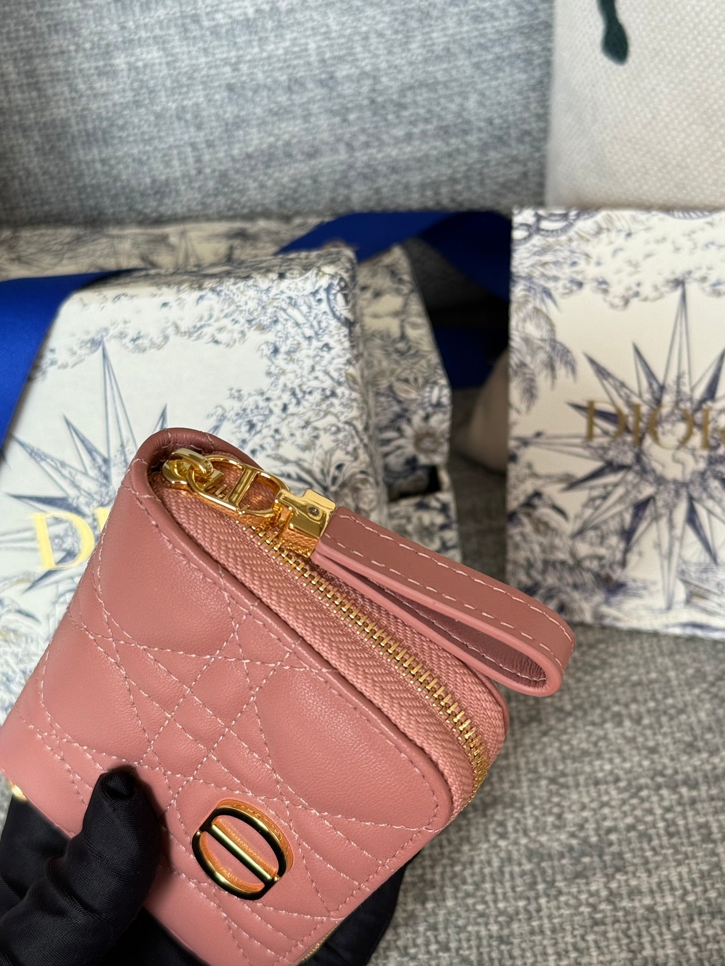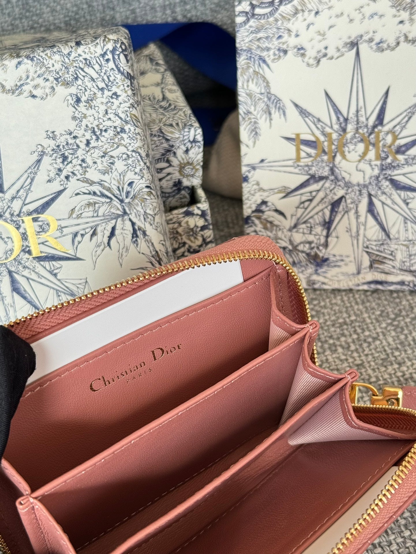 CD Logo Caro 11cm Compact Wallet Dark Pink Calfskin