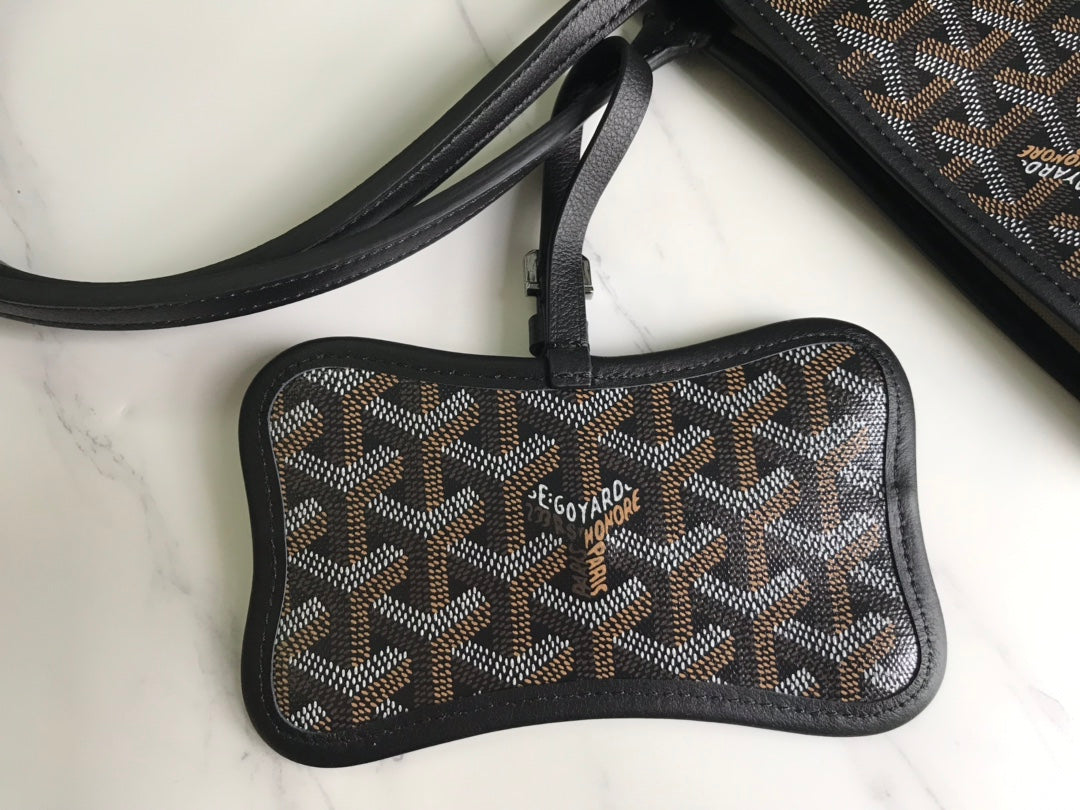CHIEN GRIS BAG 33 IN BLACK GOYARDINE CANVAS AND TAN CALFSKIN TRIM