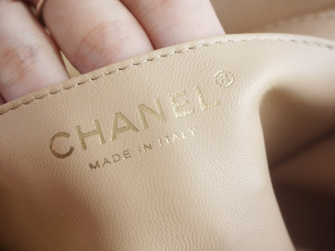 CLASSIC FLAP 17 MINI SQUARE LIGHT BEIGE LAMBSKIN GHW